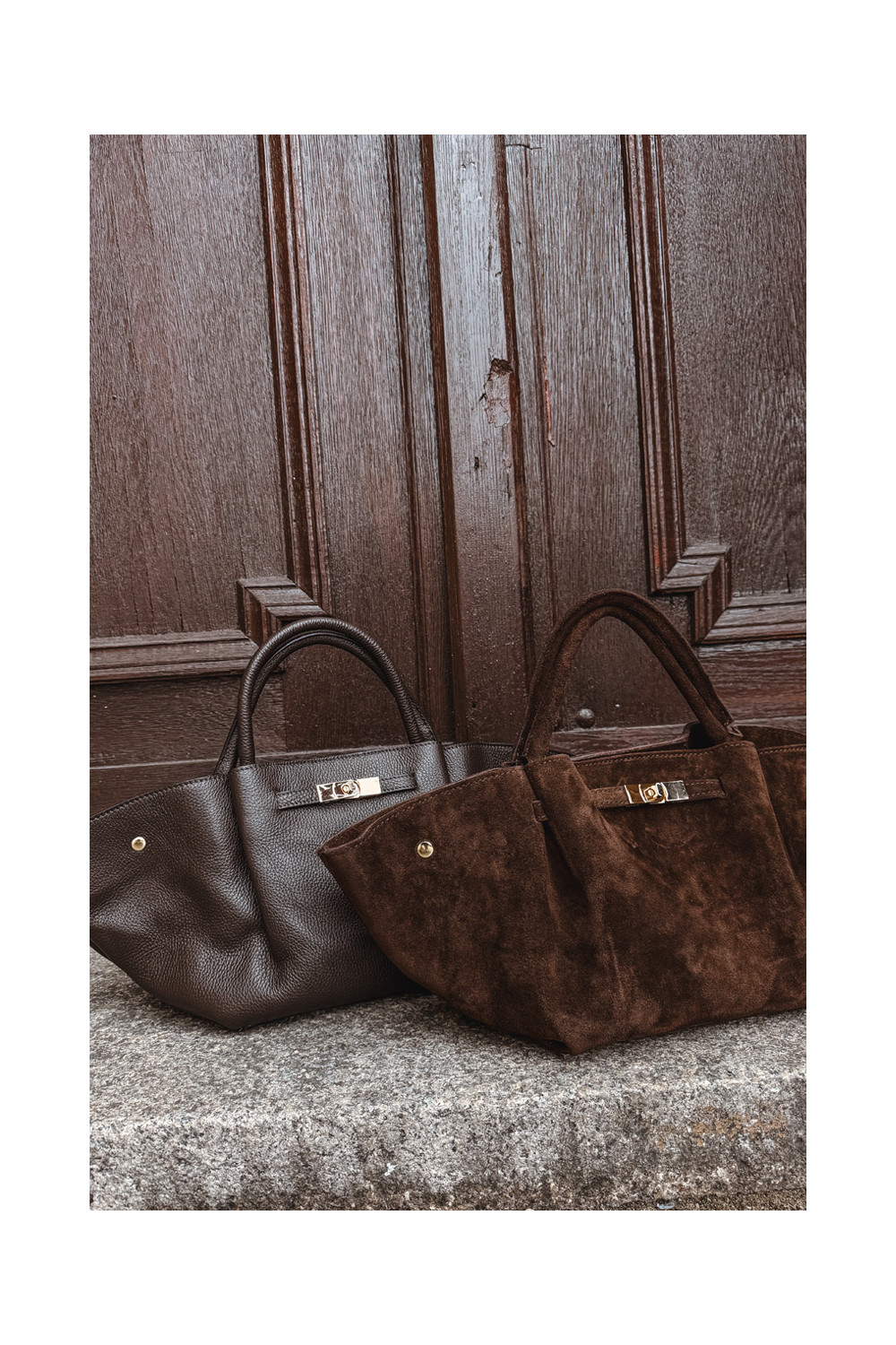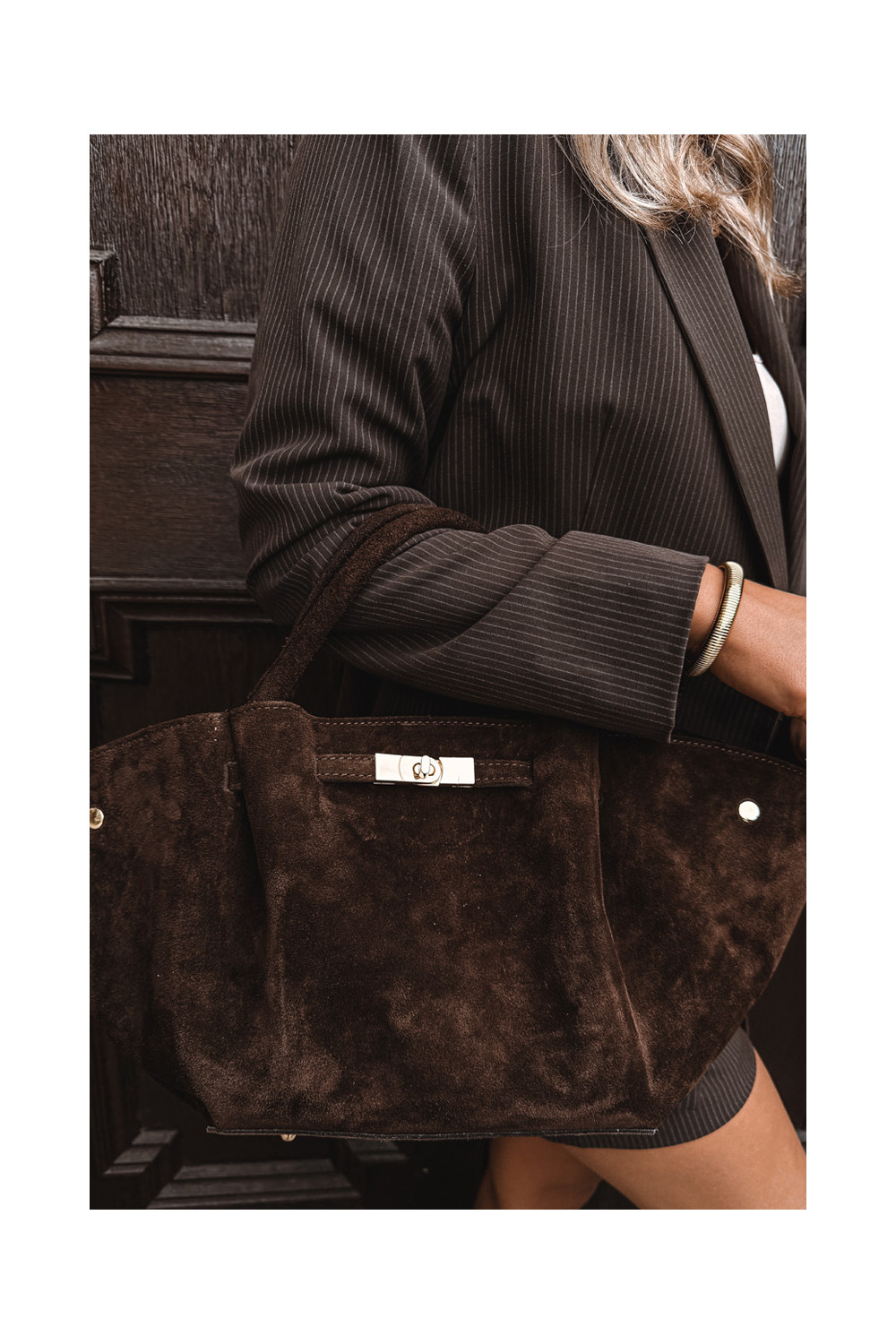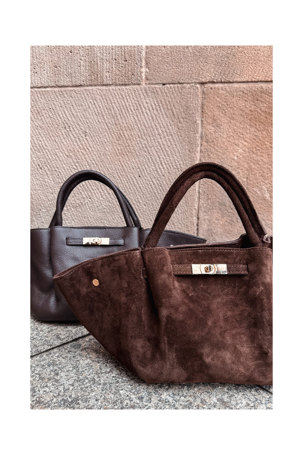 Šokoladinės spalvos dirbtinės zomšos rankinė Fiorenza