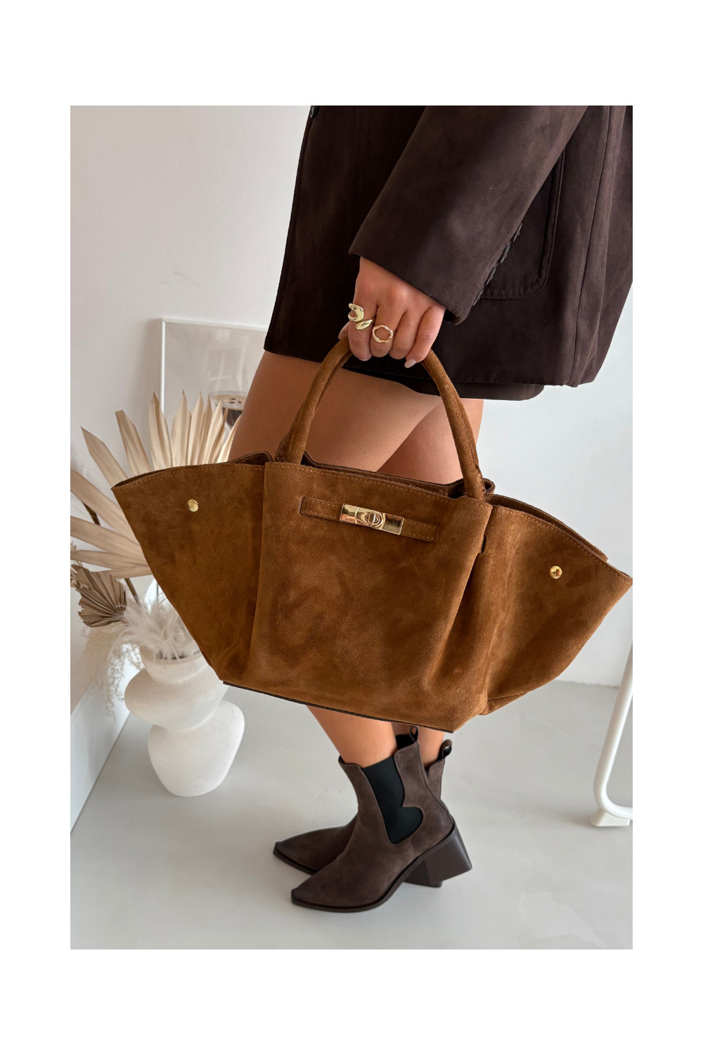 Rudos spalvos dirbtinės zomšos rankinė Fiorenza