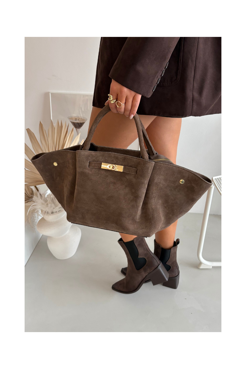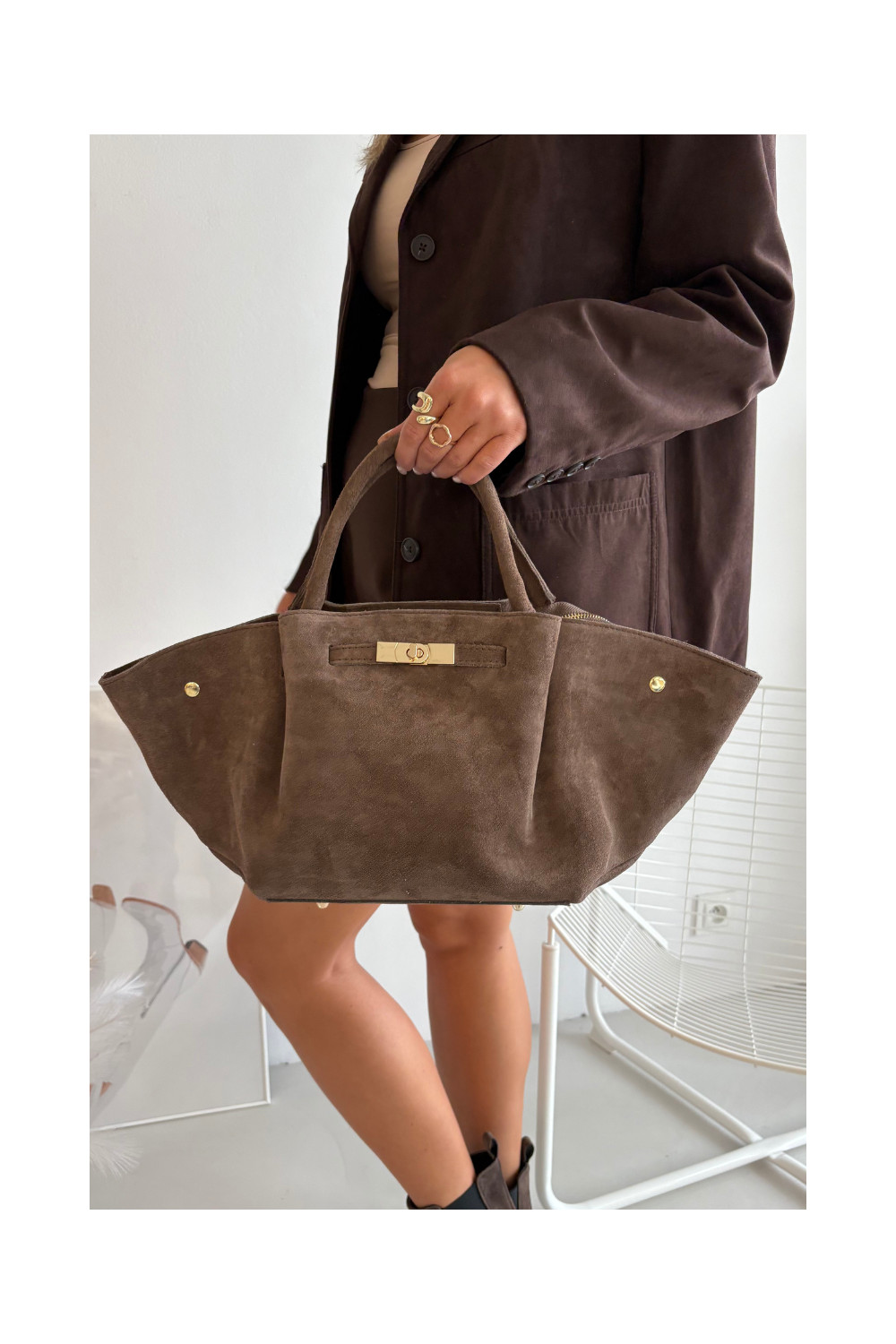 Tamsaus smėlio spalvos dirbtinės zomšos rankinė Fiorenza