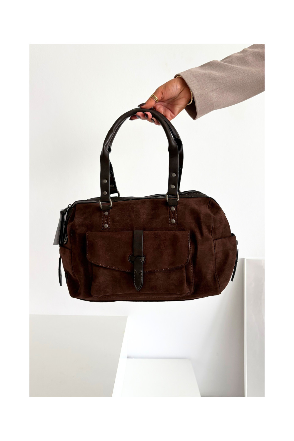Rankinė Z iš eko zomšosu Czekoladowa Gressa