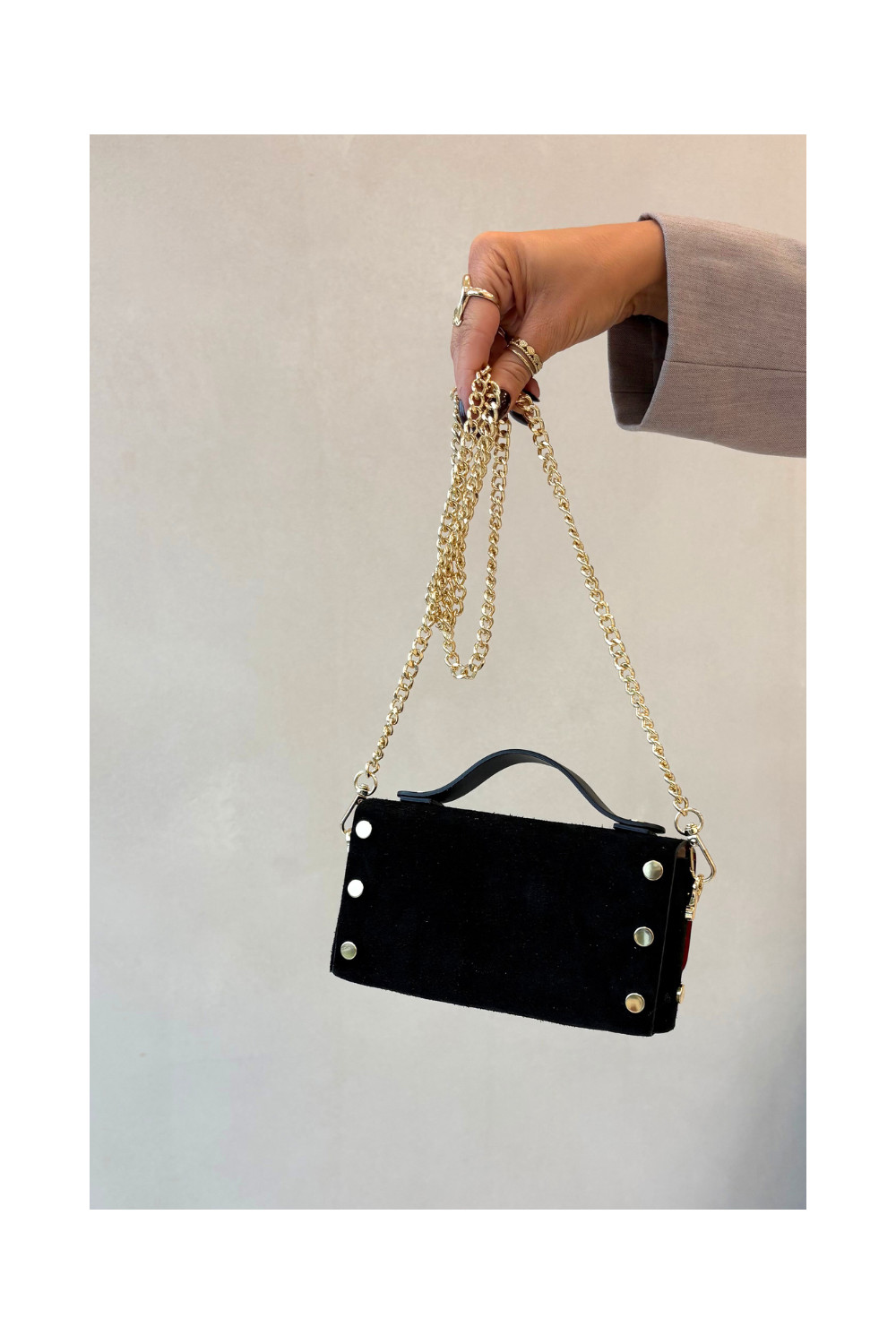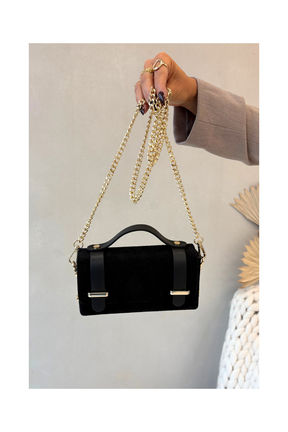 Rankinė Z Naturalnego Zamszu su grandinėlėmis juoda Nivra