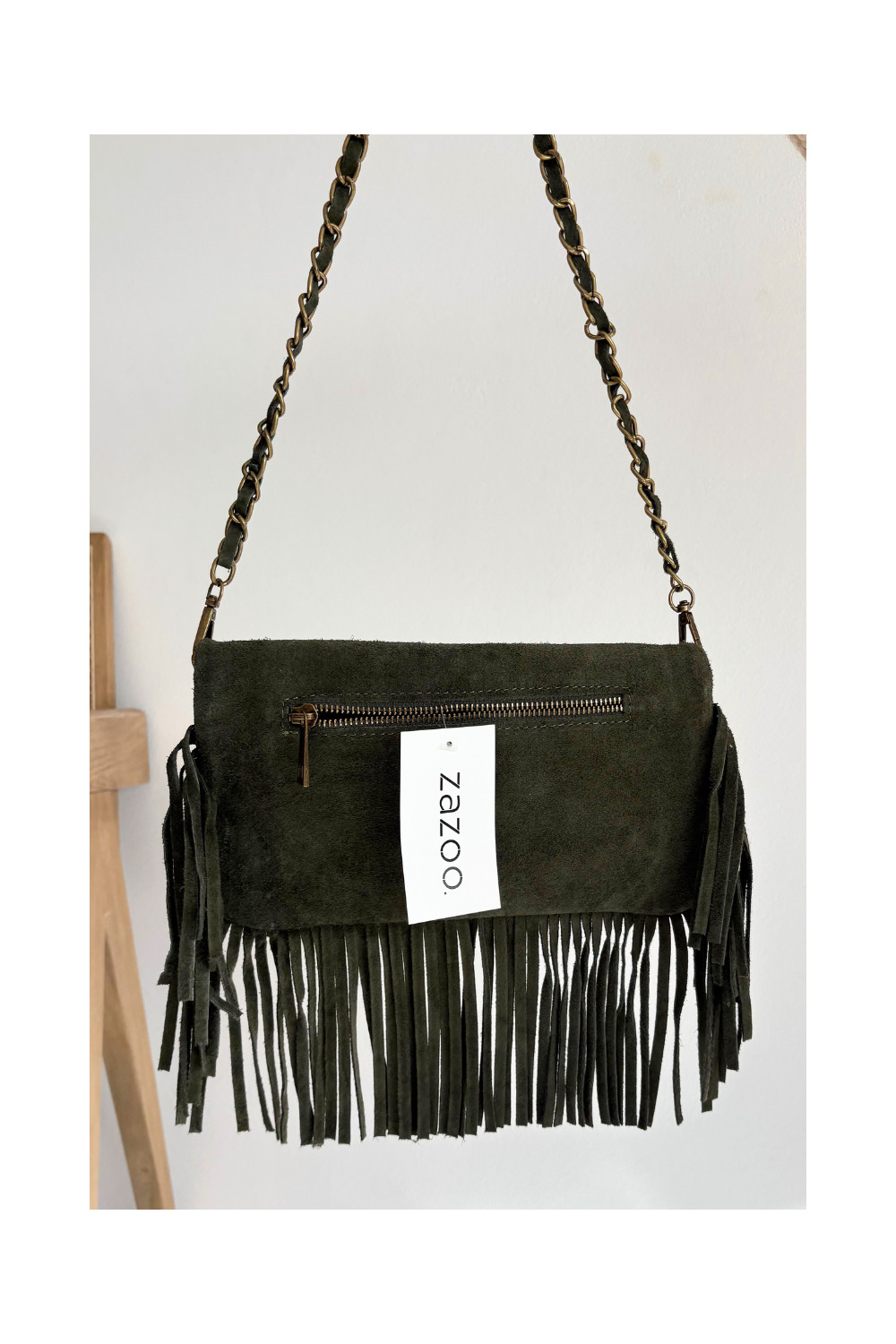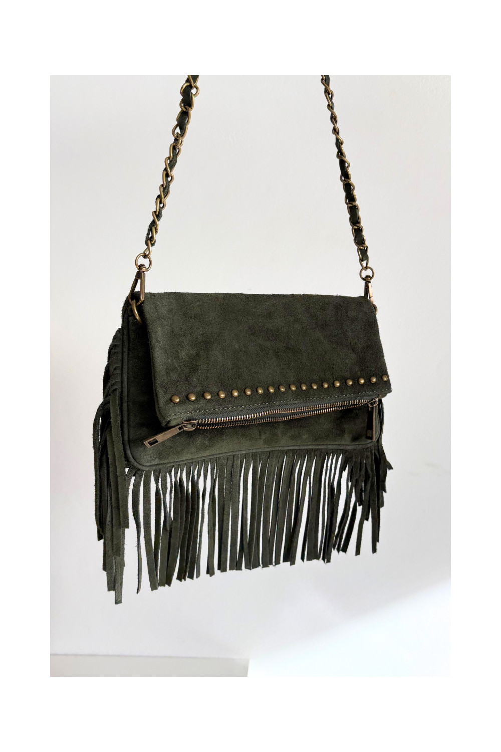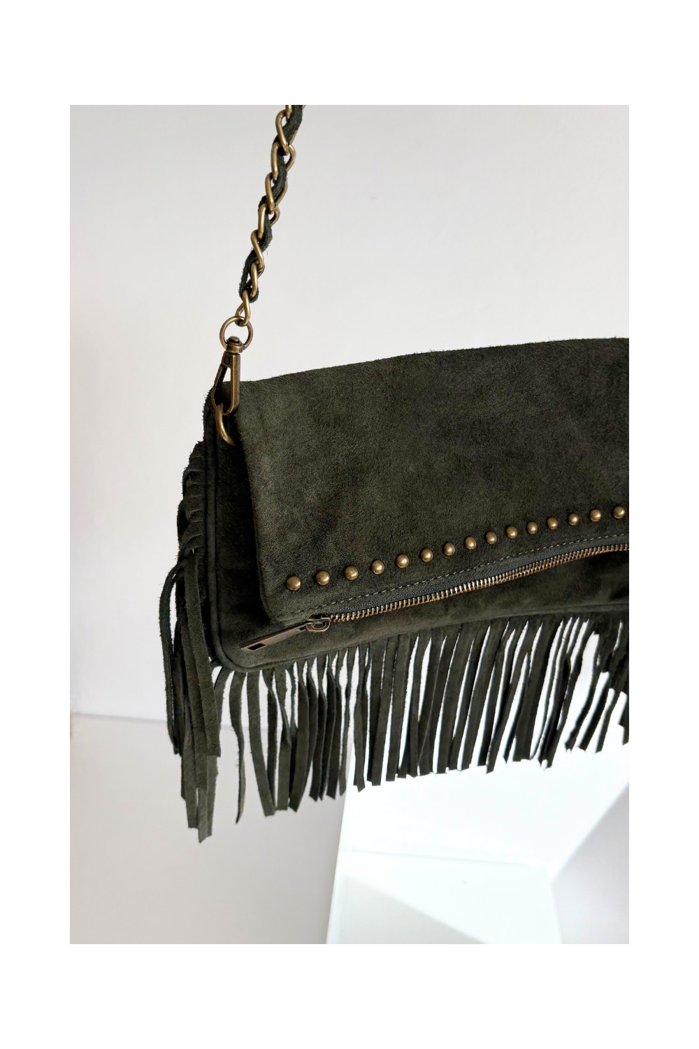 Zamszowa Rankinė su kutais su grandinėle zielona Narella