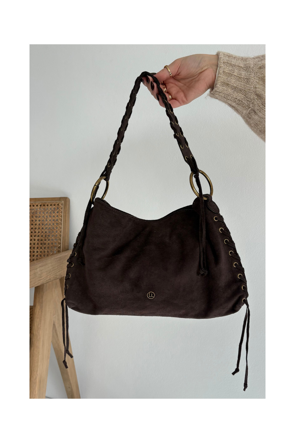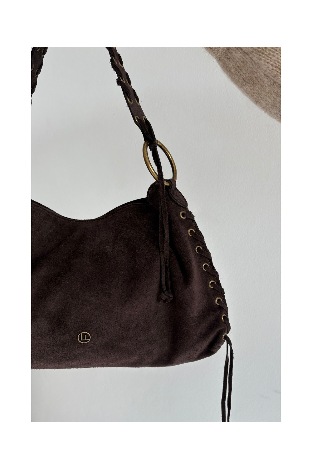 Skórzana Zamszowa Rankinė  m Czekoladowa Janelis