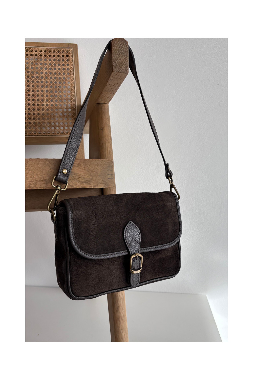 Skórzana Zamszowa Rankinė Czekoladowa Norla
