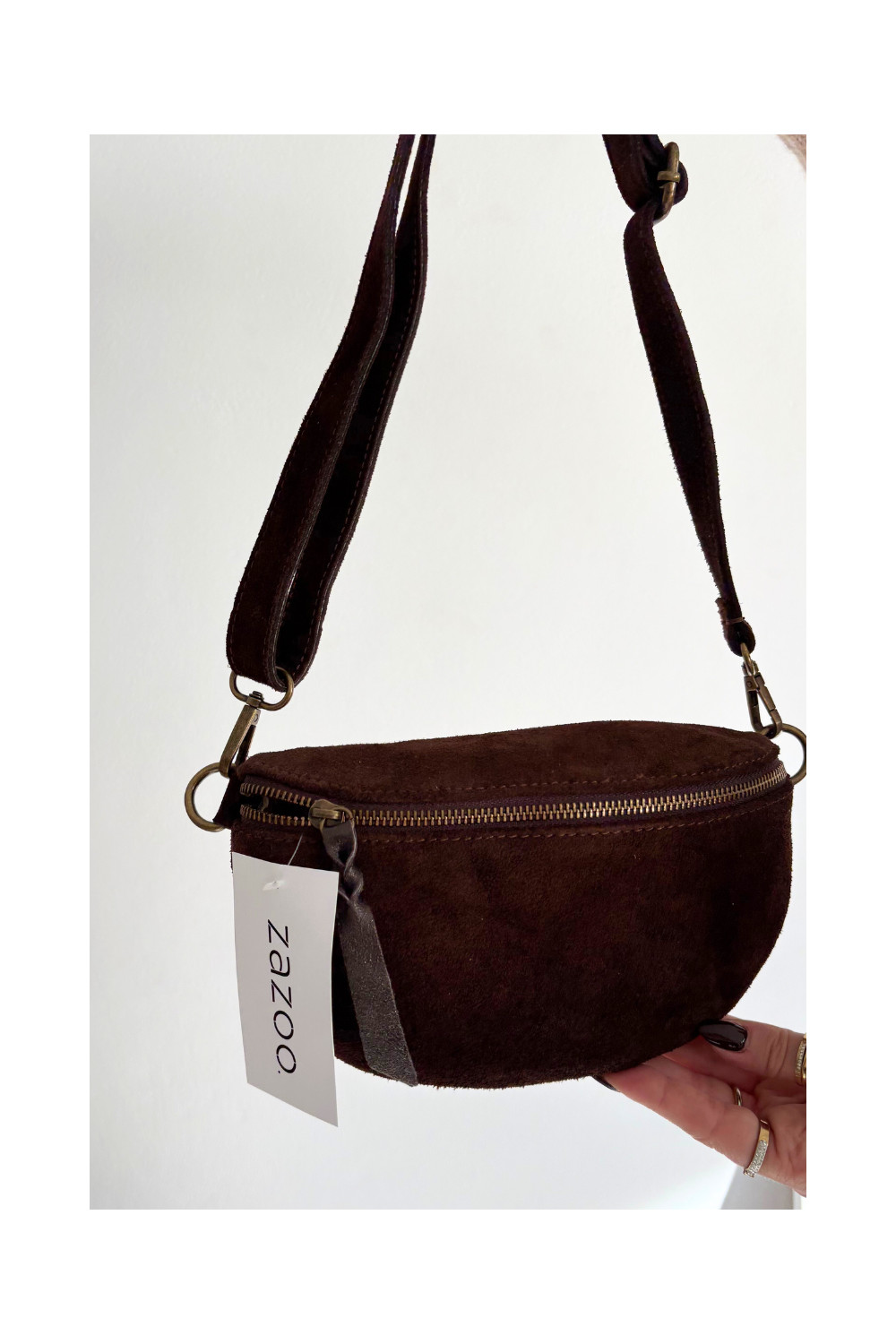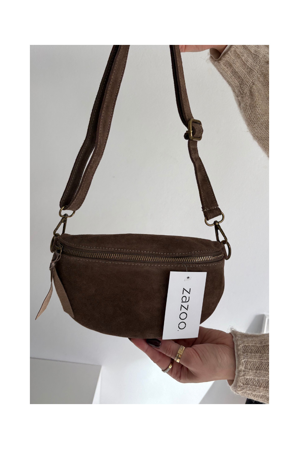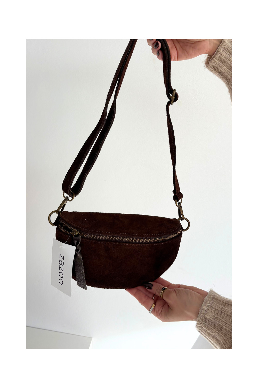 Skórzana Zamszowa Rankinė ant liemens Czekoladowa Wessa