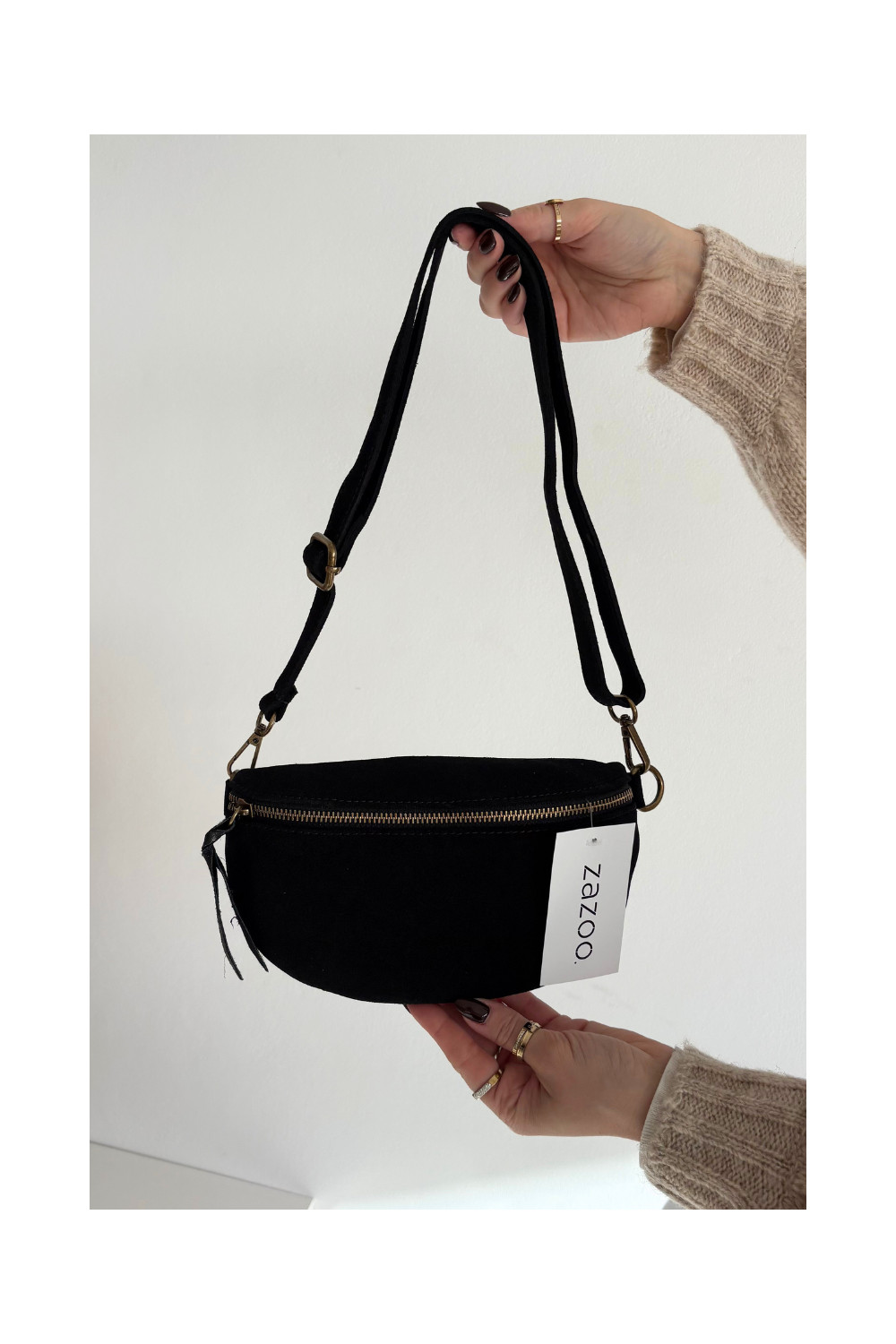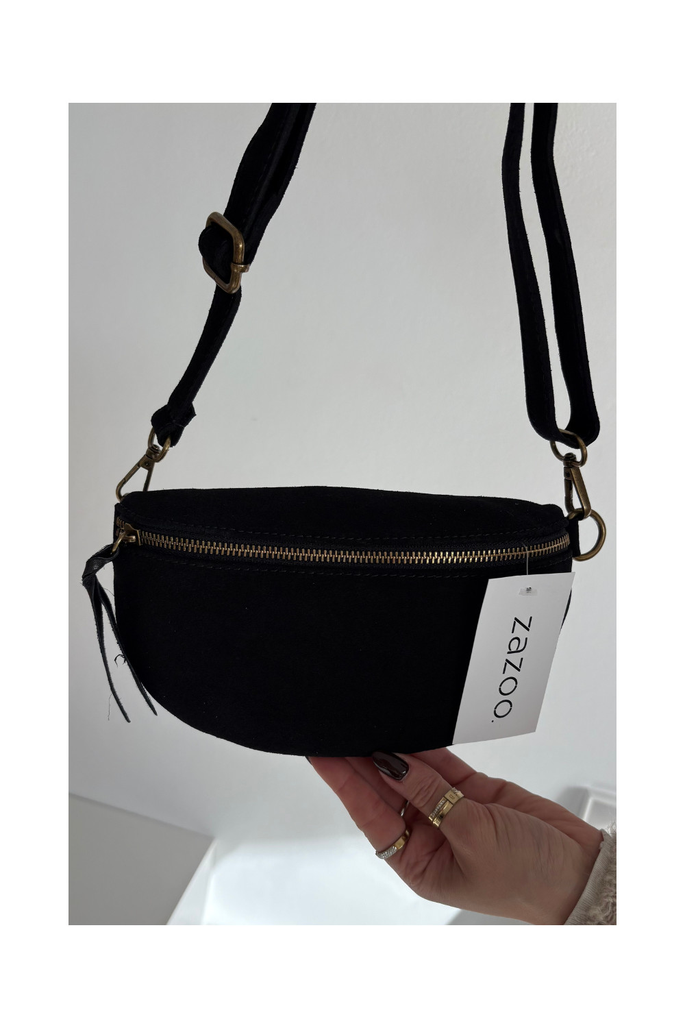 Skórzana Zamszowa Rankinė ant liemens Juodos spalvos Wessa