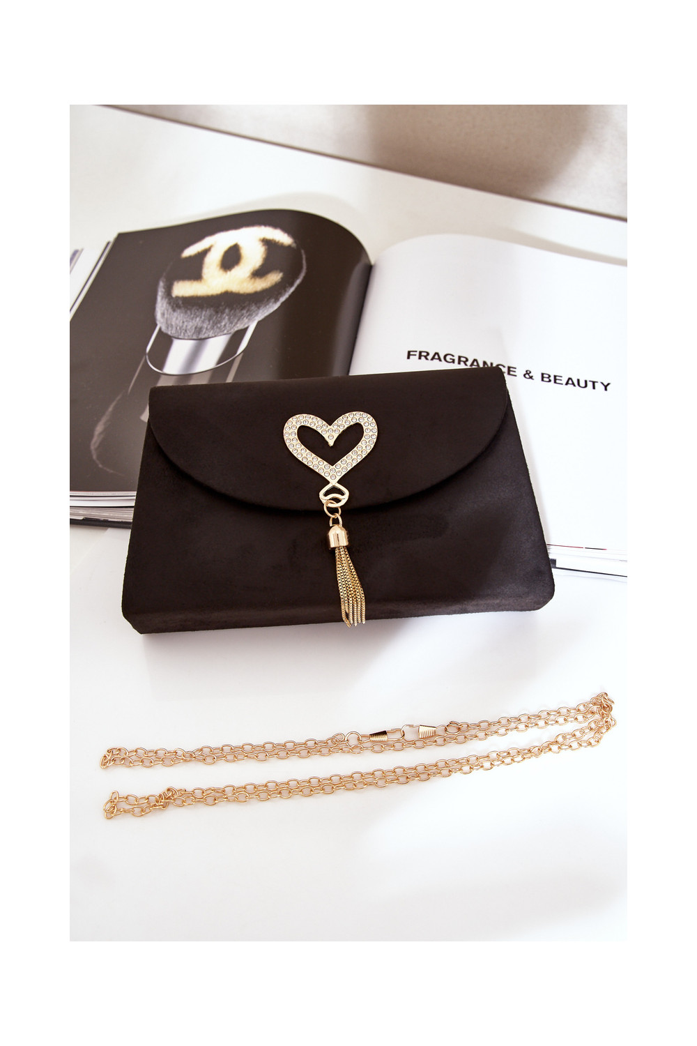 Rankinė voko tipo Su puošniais su širdelėmism iš eko zomšosoĮa juoda Evilinas