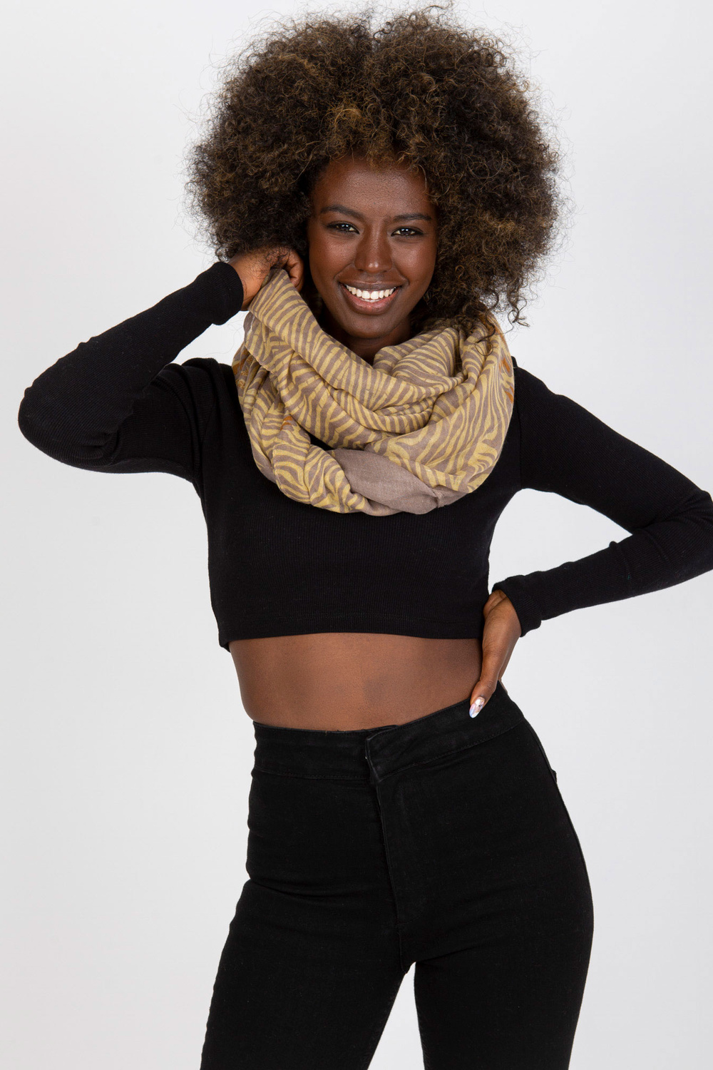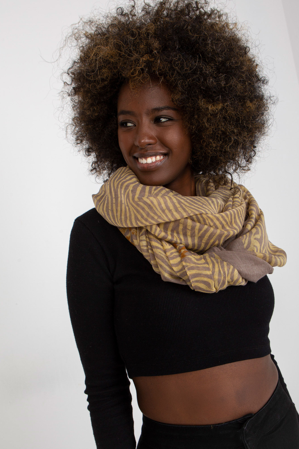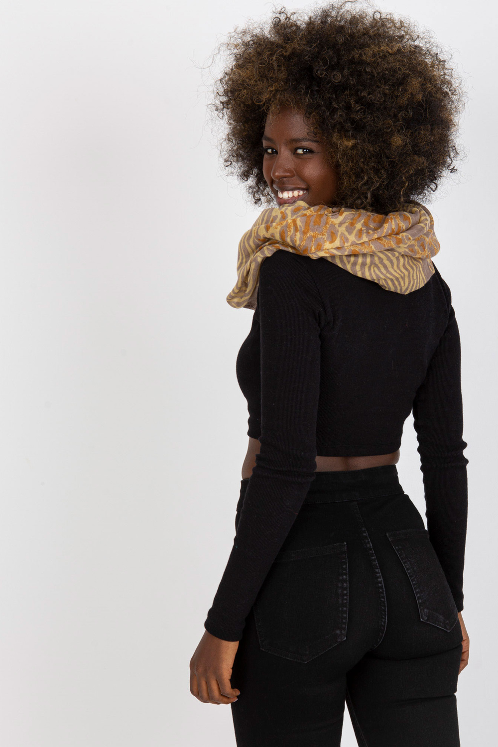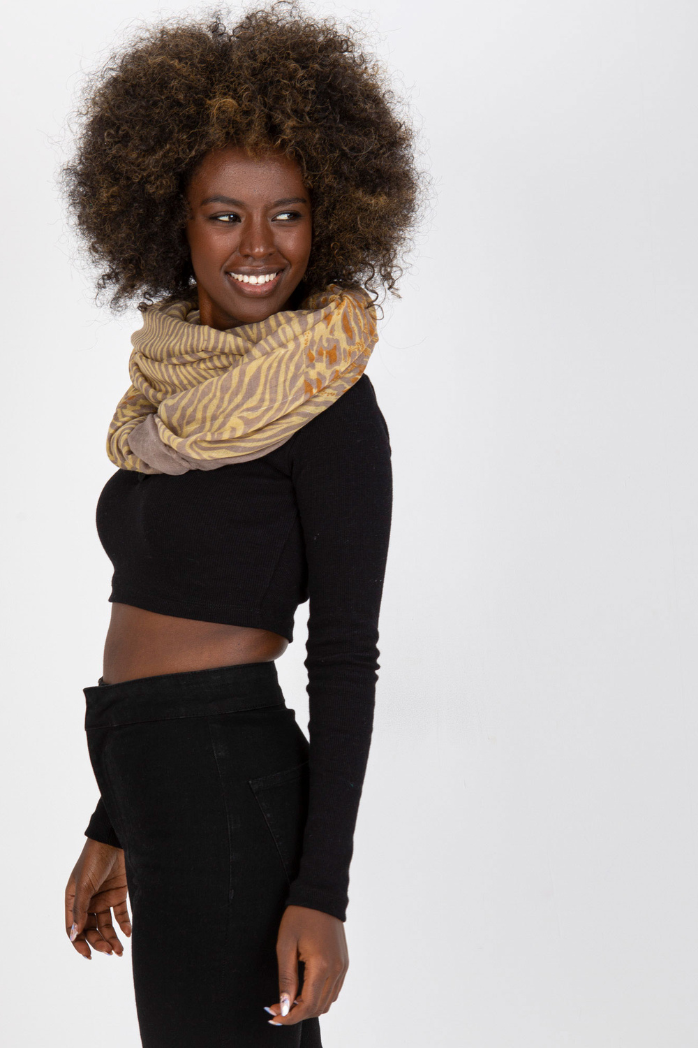 Tamsiai geltonos spalvos stropinis kaminas su motyvu . medžiagasudėtis: 100% viskozė skalbimo būdas: skalbimas mašinoje 30°C Gaminio kodas: AT-KM-S-6221 Dominuojantis Raštas: Gyvūnai Temos matmenys: apytiksl. 218 x 86 cm