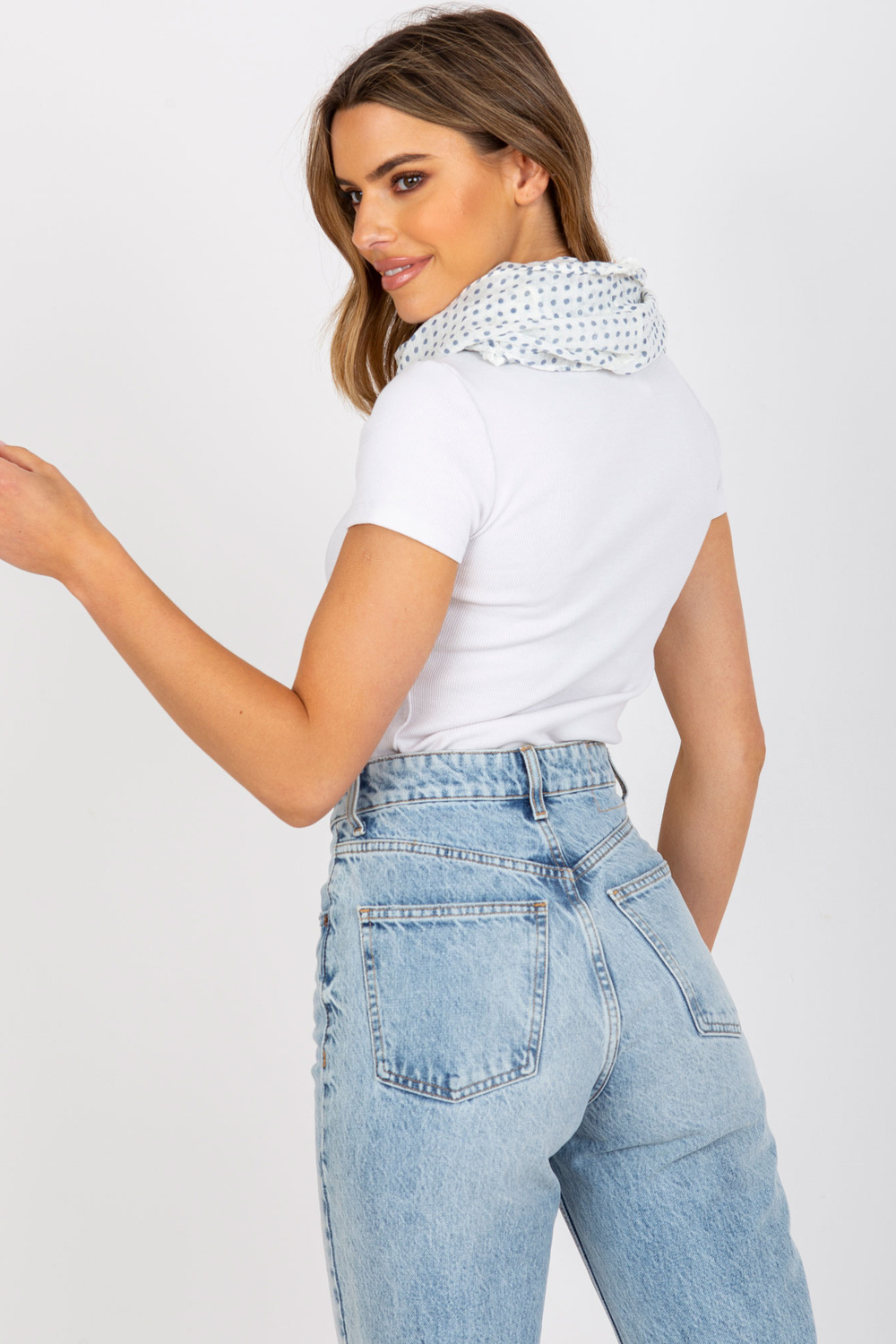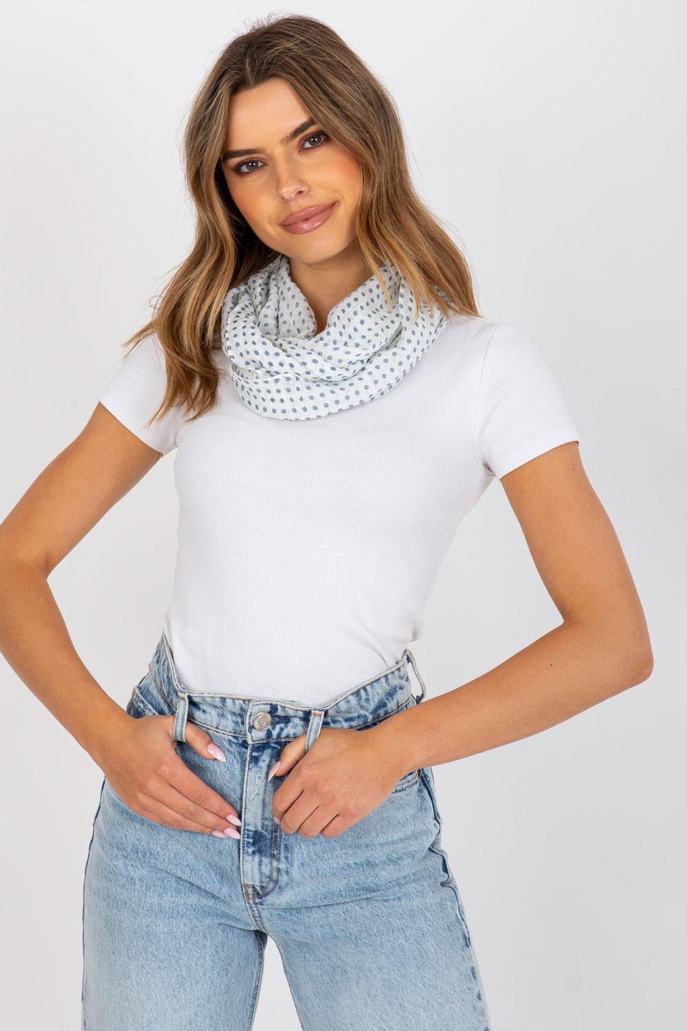 Baltųjų moterų kaminas su taškeliais .