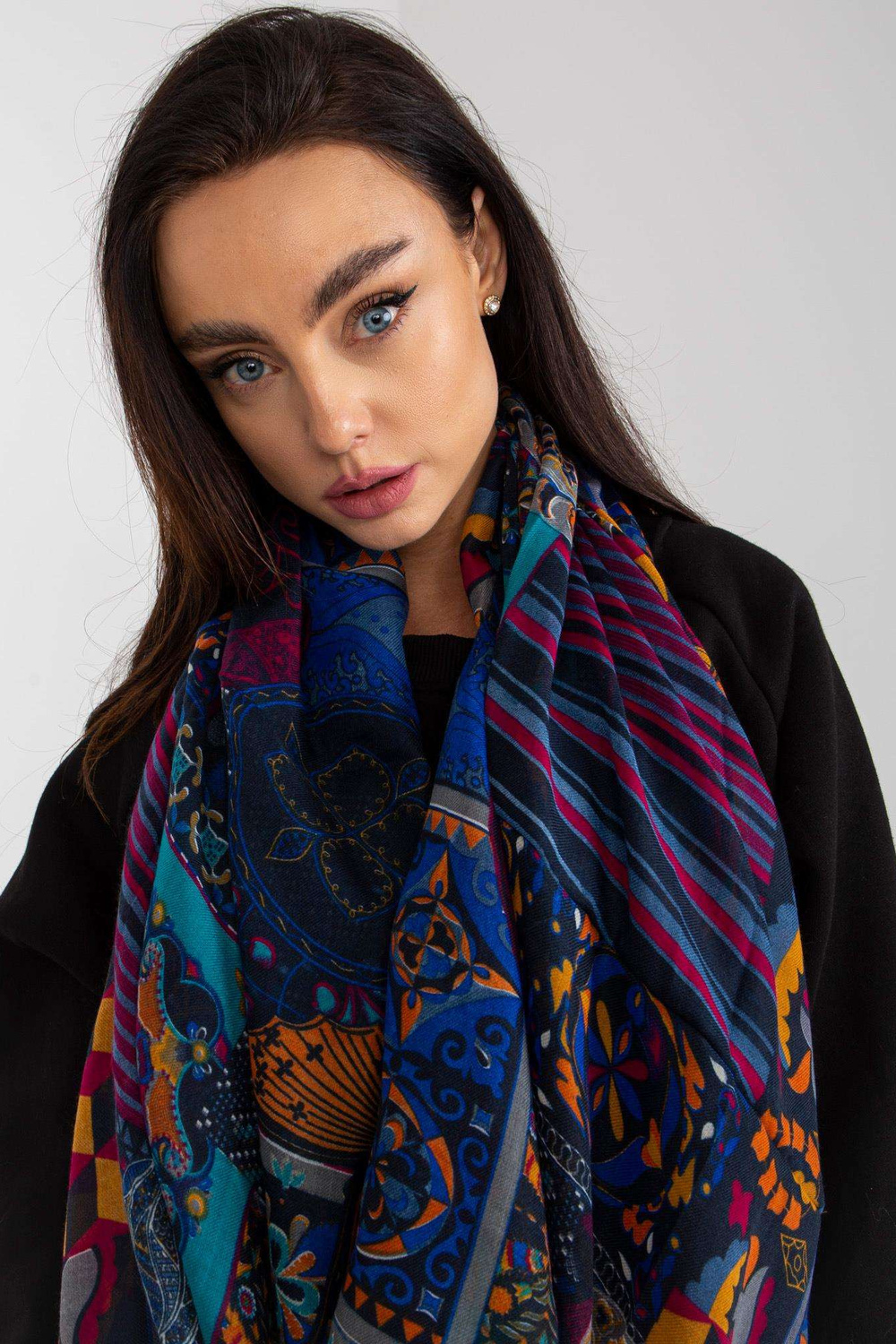 Marineblaue Kaminschlinge mit Aufdrucken. Produkto kodas: AT-KM-ENEC-A9.91 Dominantes Turinys: Druck Maße: ca. 176 x 92 cm