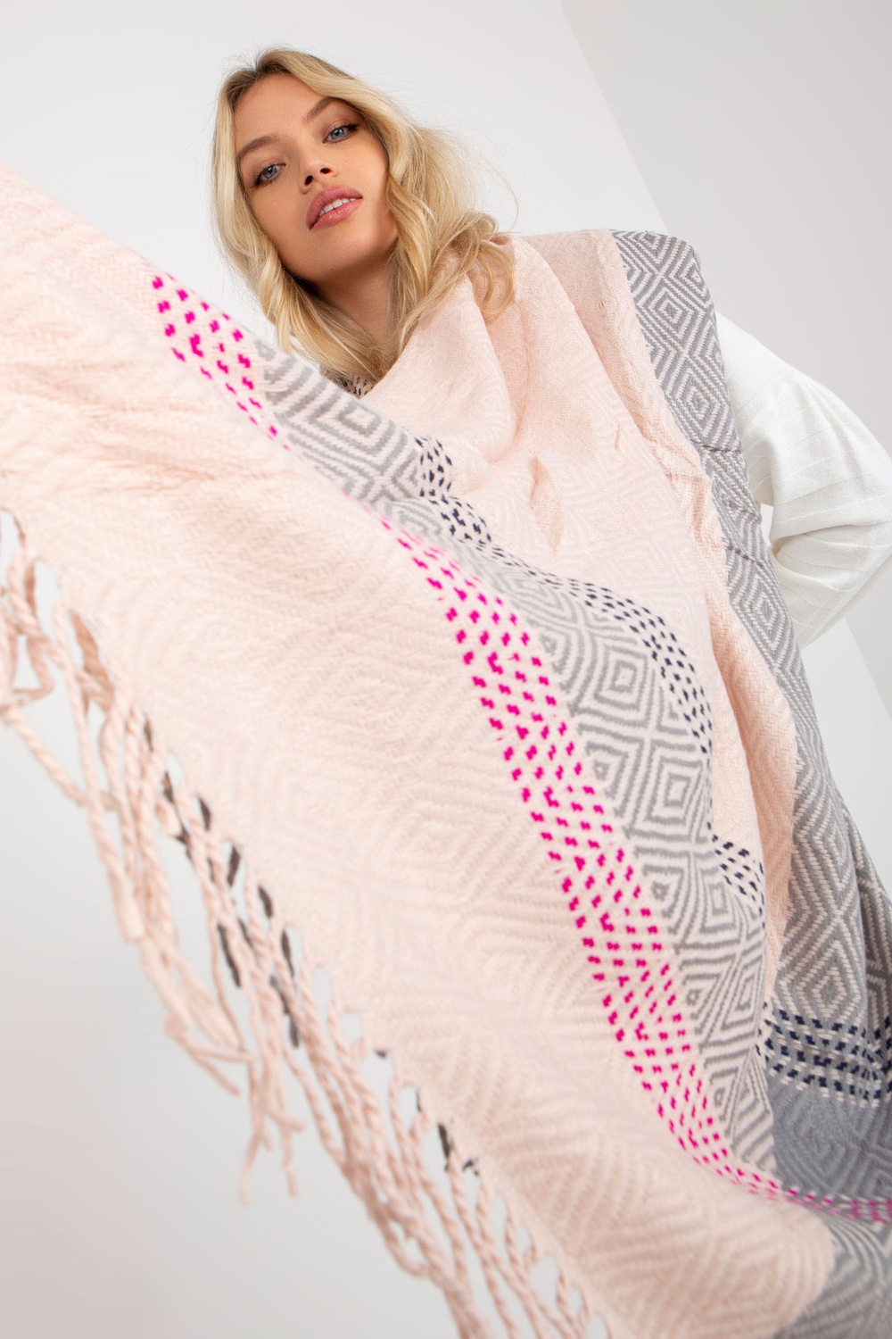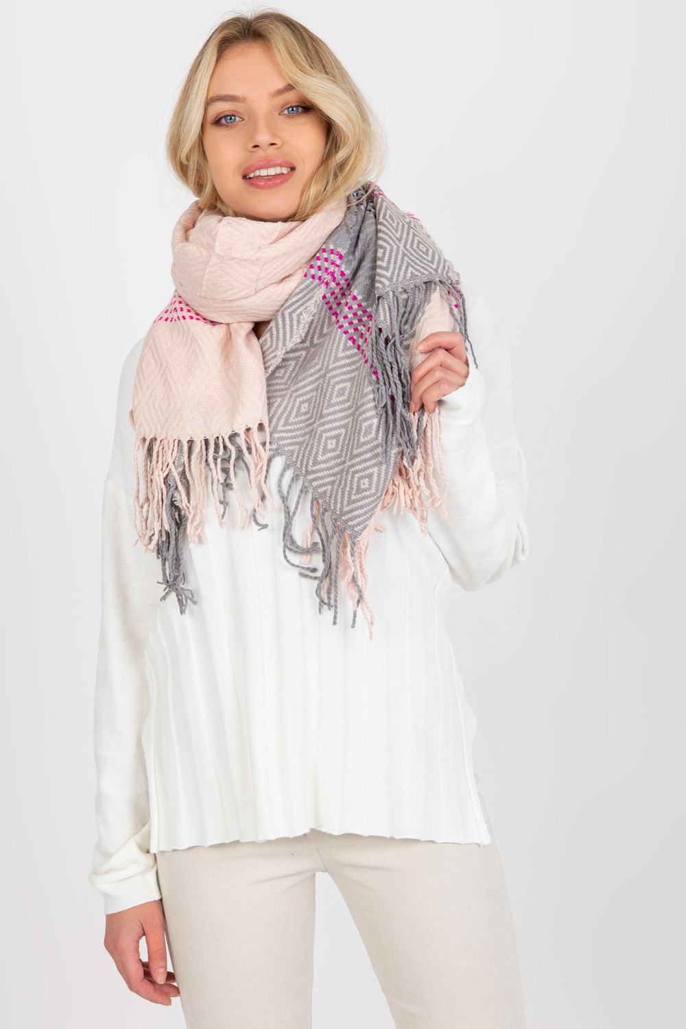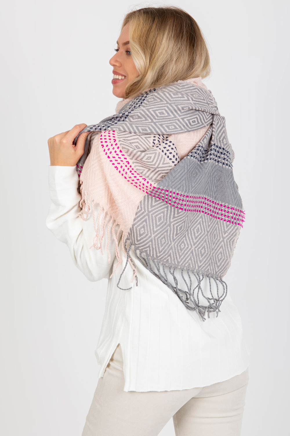 Šviesiai rožinė ir pilka moteriška žieminė skara su raštais< /strong> .