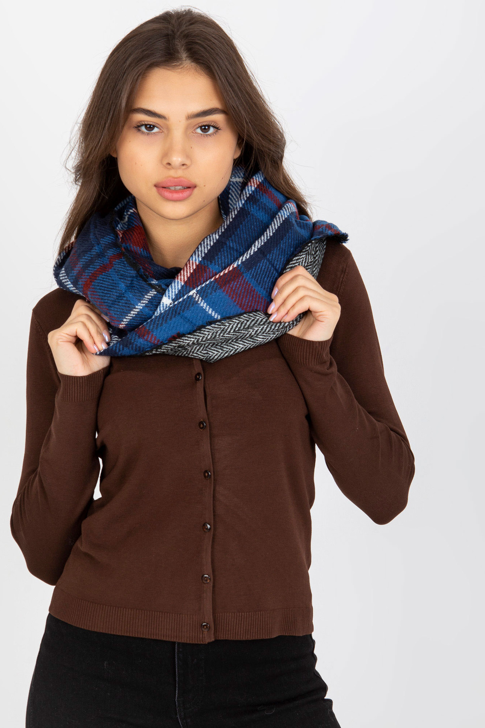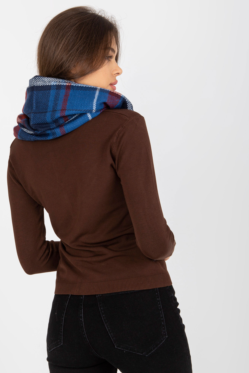 Tamsiai mėlynos ir bordo spalvos žieminis kaminas su langu.