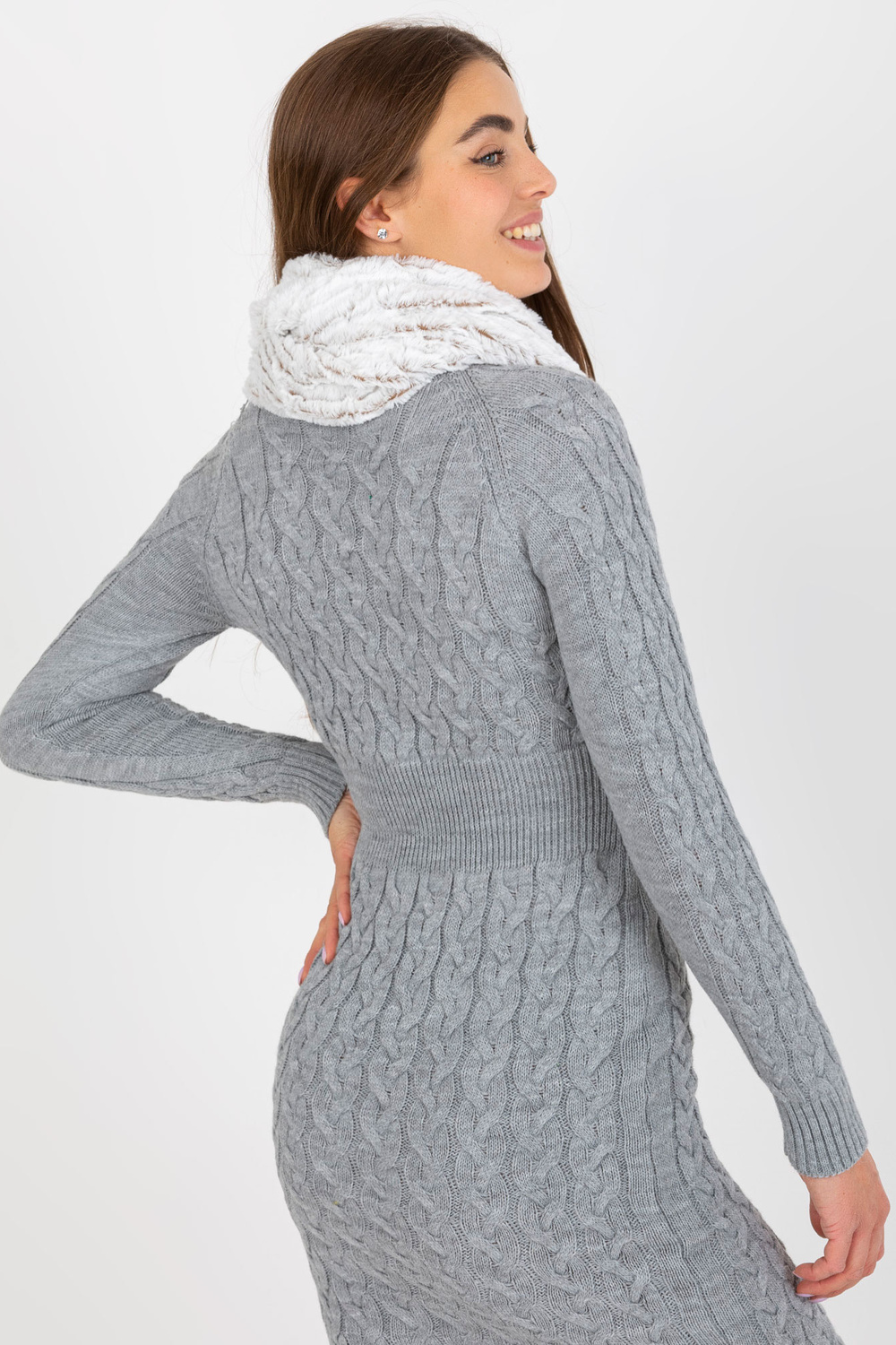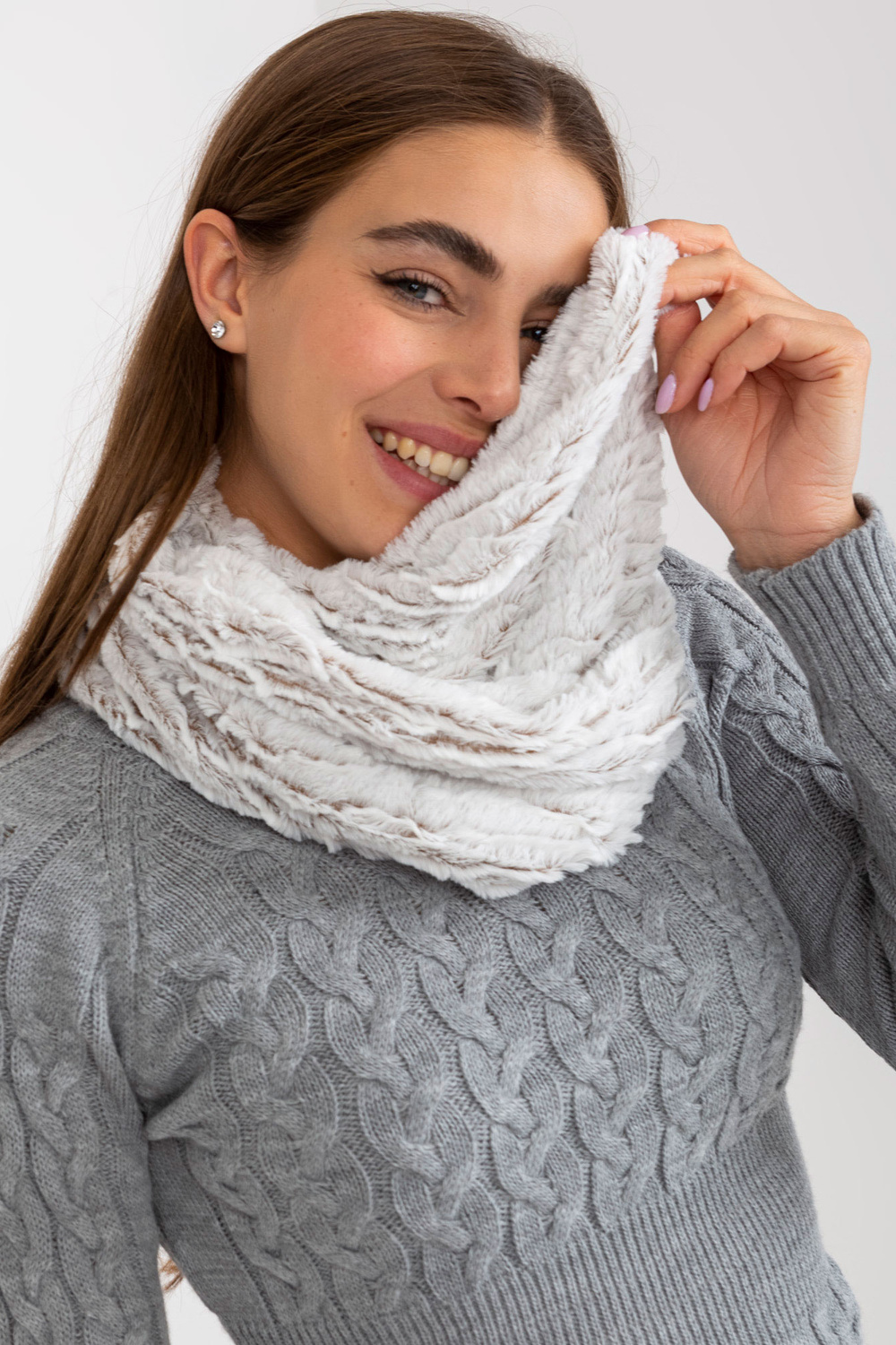 Baltai rudas žieminis kaminas iš dirbtinio kailio.