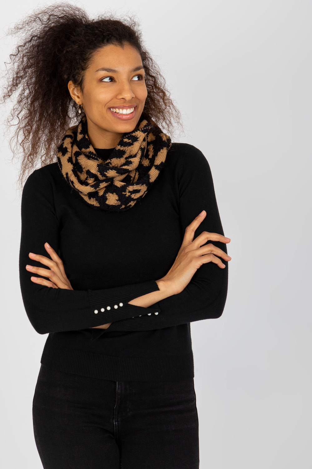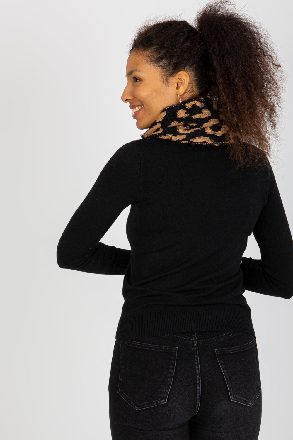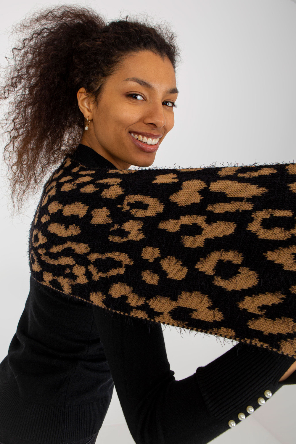 Juodas ir kupranugarių spalvos žieminis kaminas su gyvūnų raštais.