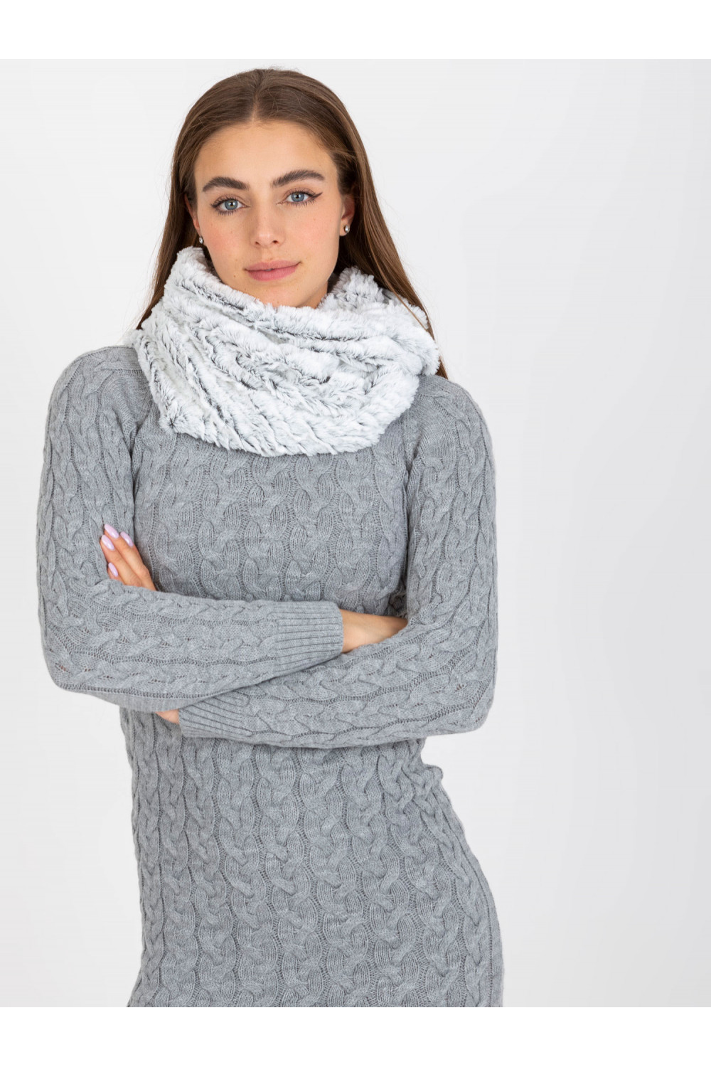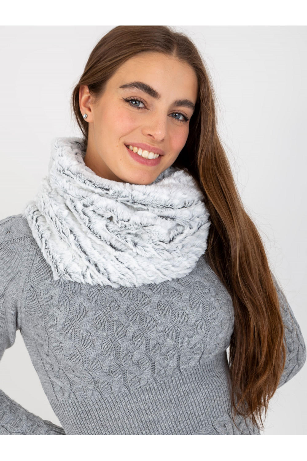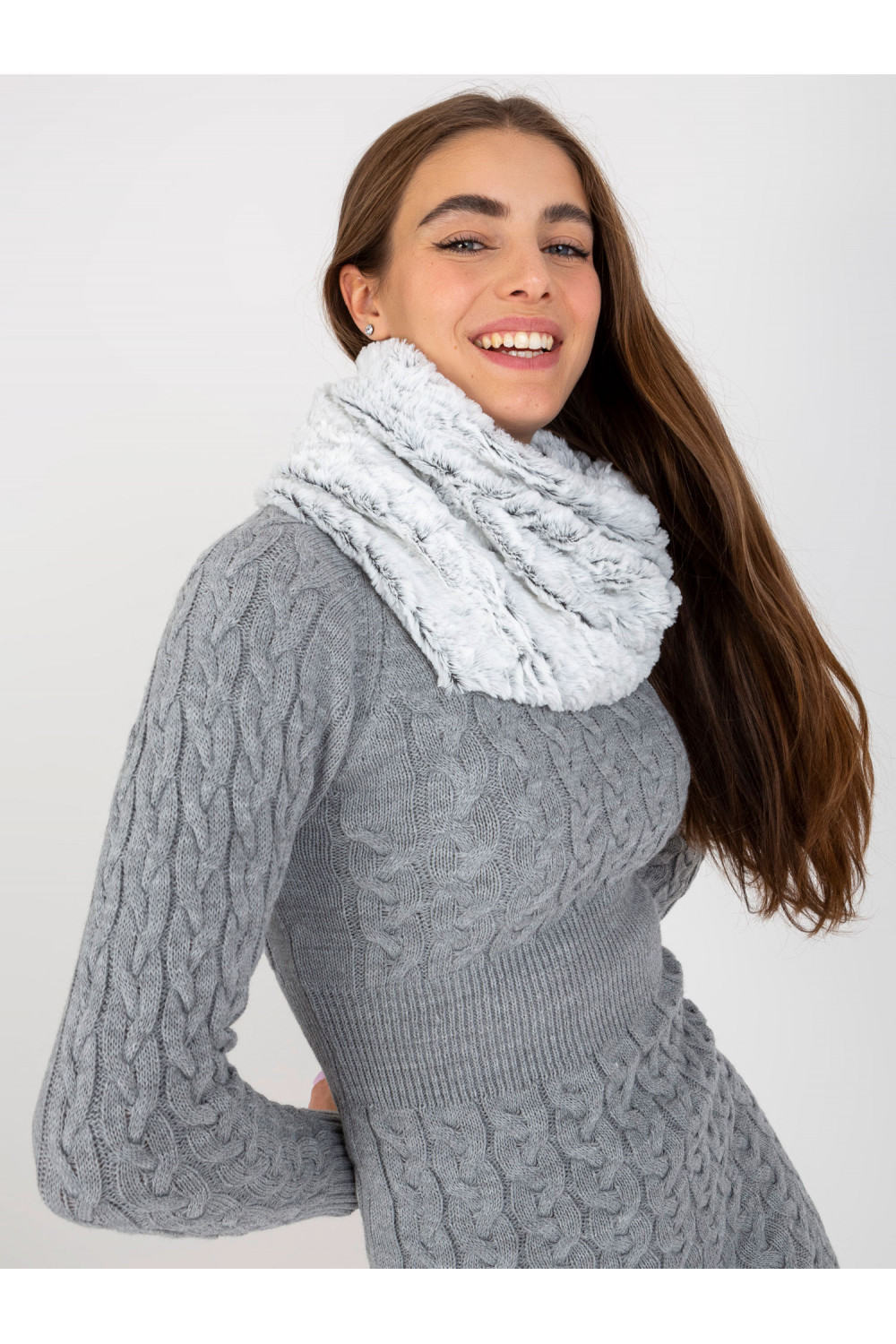 Baltai juodas šiltas kaminas iš dirbtinio kailio.
