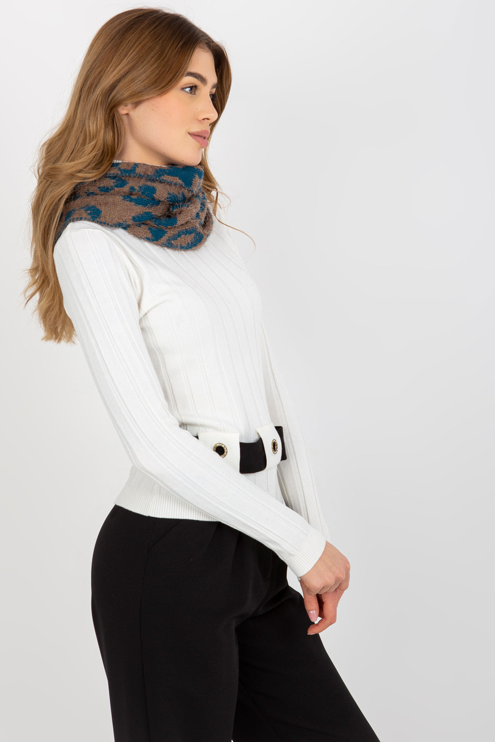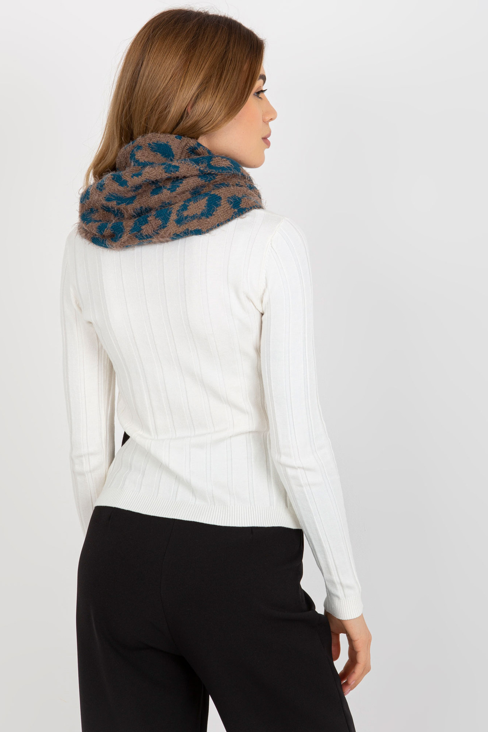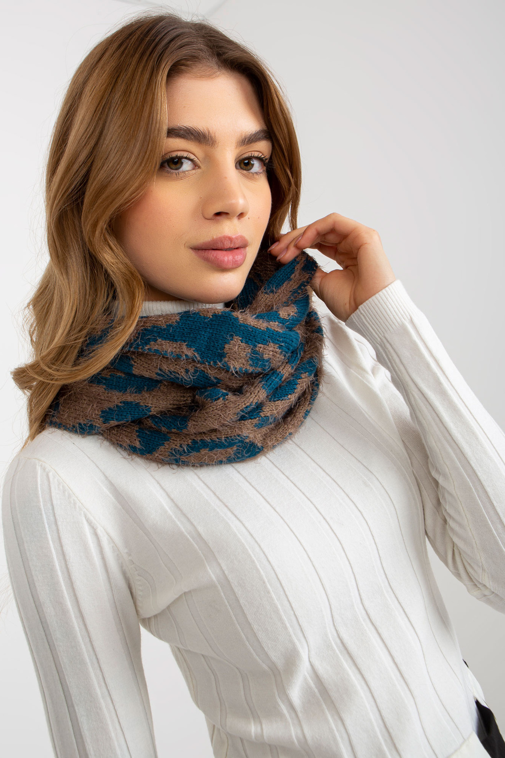 Tamsiai smėlio spalvos jūros žieminis kaminas su raštais.