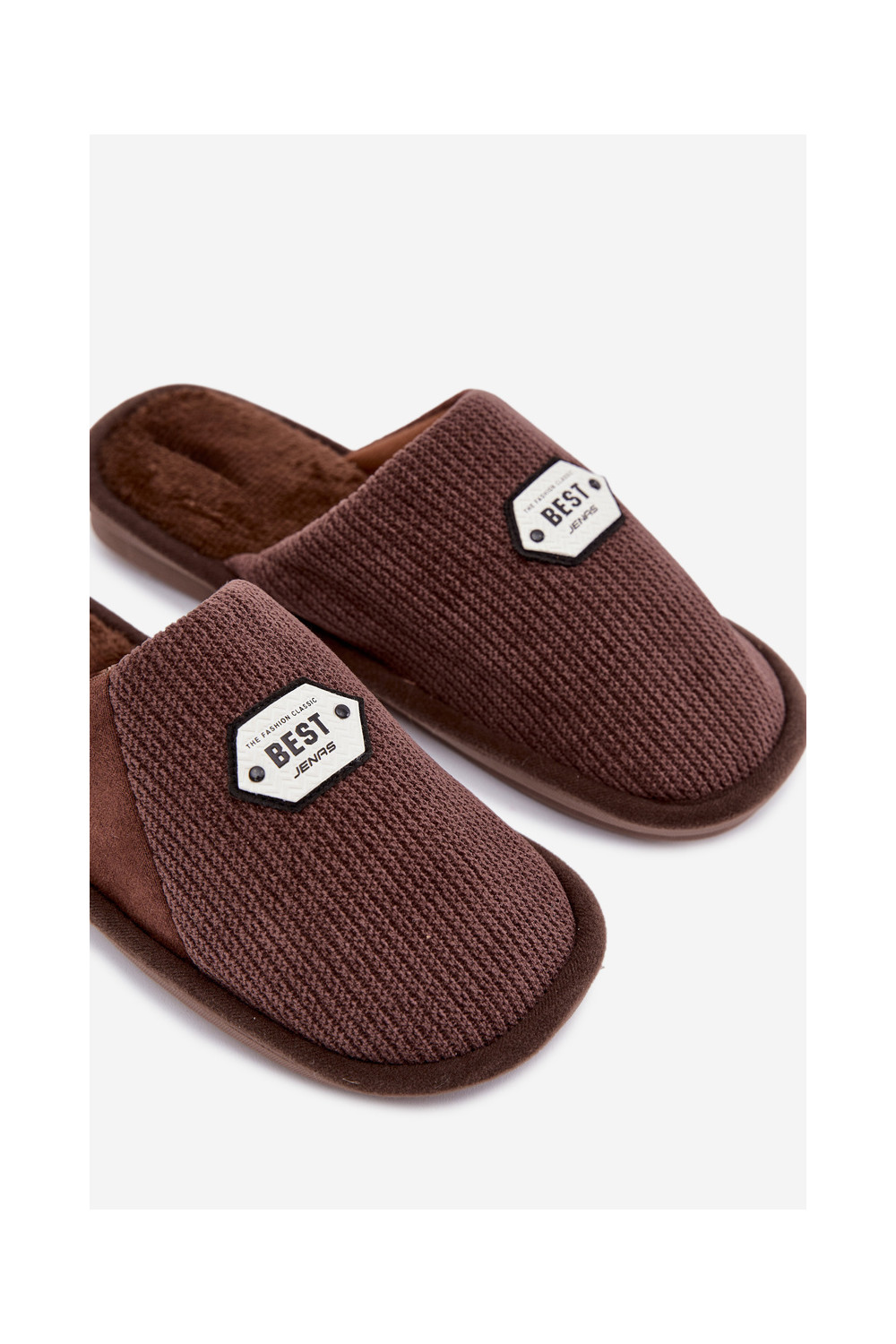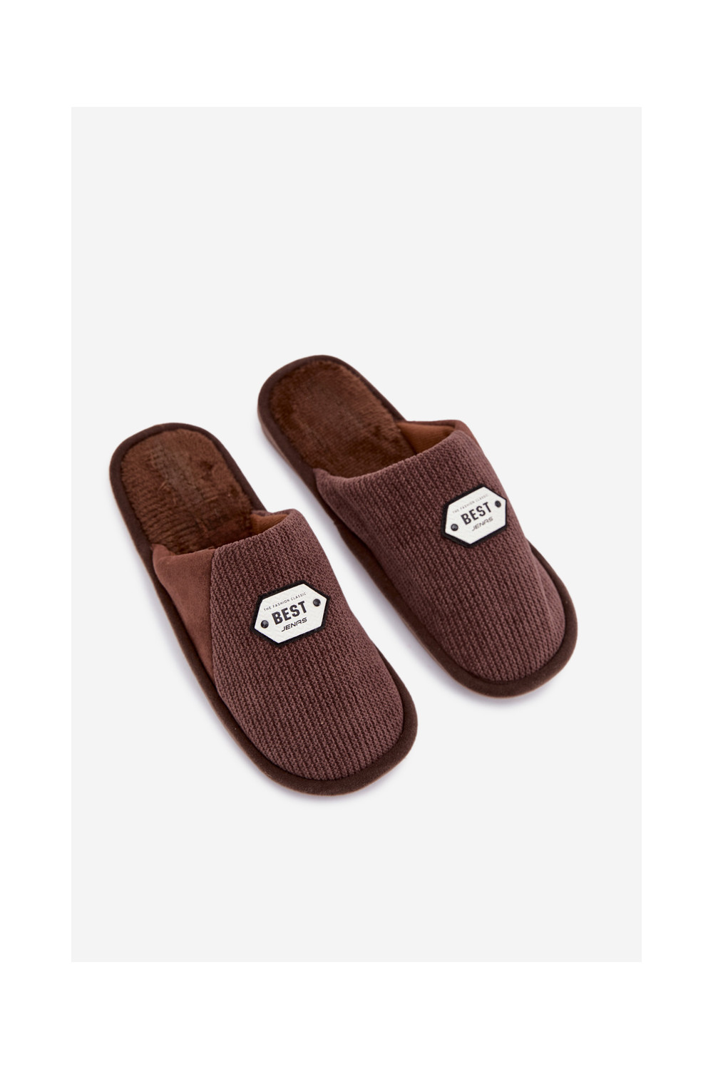 Šlepetės Z Naszywką rudos spalvos Presine