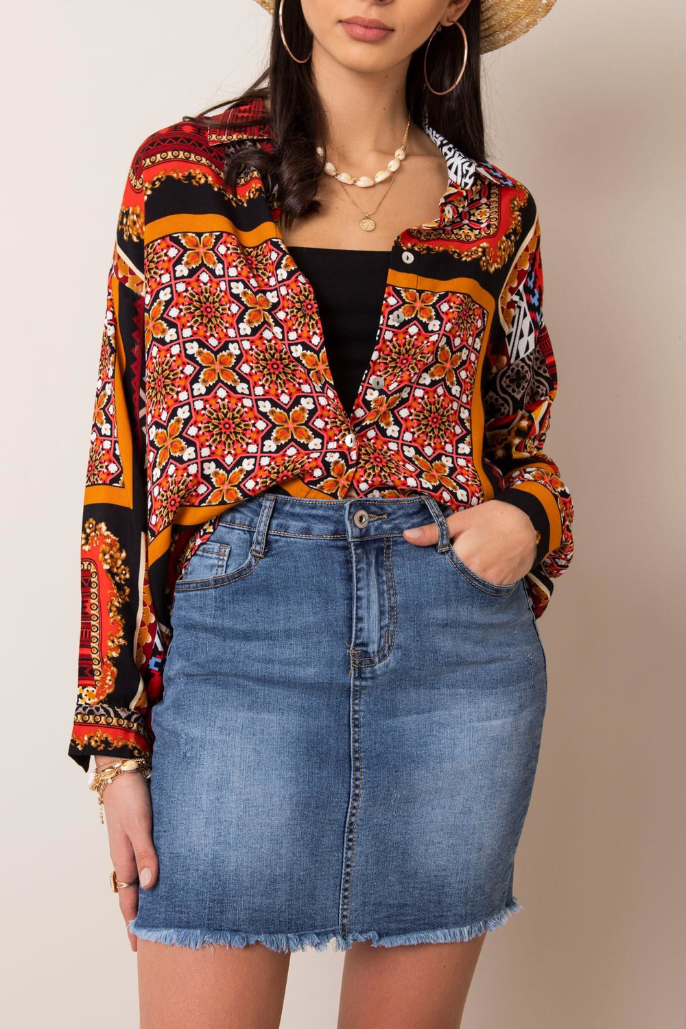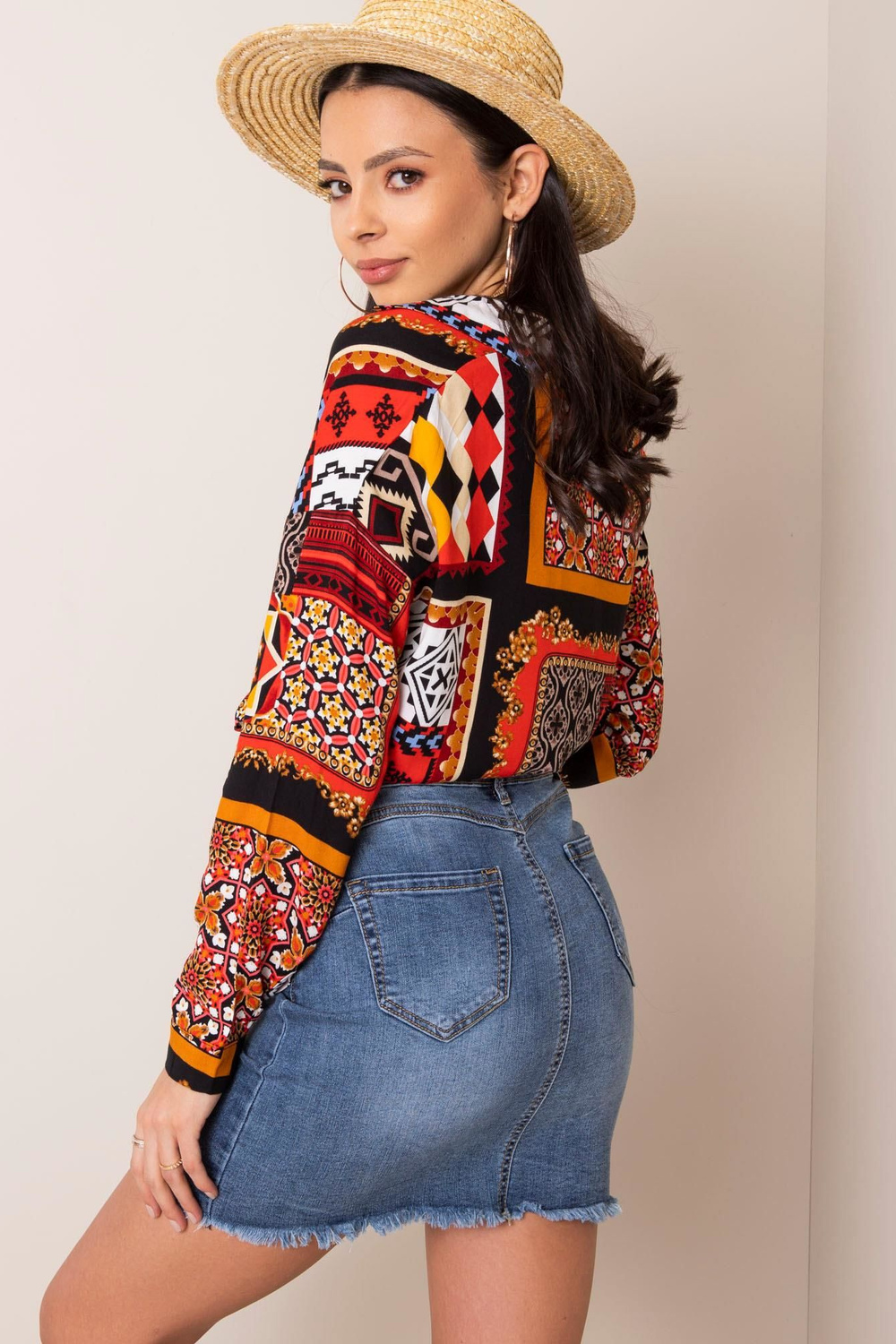 Modelis dėvi S dydį. Modelio išmatavimai: ūgis 175 cm, krūtinė 84 cm, juosmuo 61 cm, klubai 91 cm.