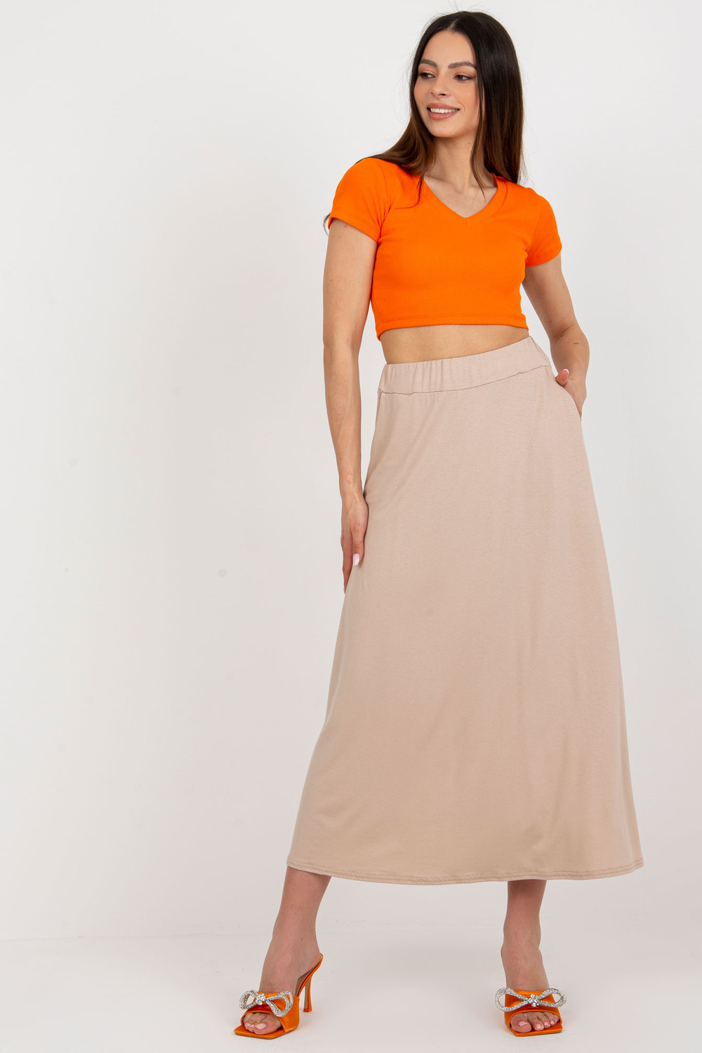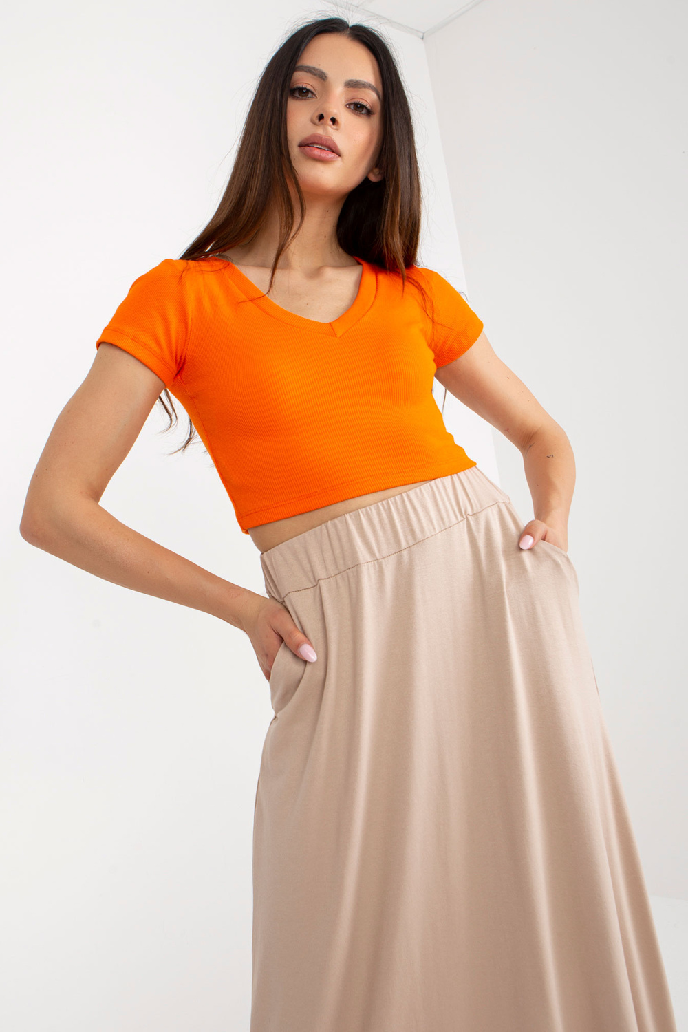Modelis dėvi S/M dydį. Modelio išmatavimai: ūgis 175 cm, krūtinė 84 cm, juosmuo 61 cm, klubai 91 cm.