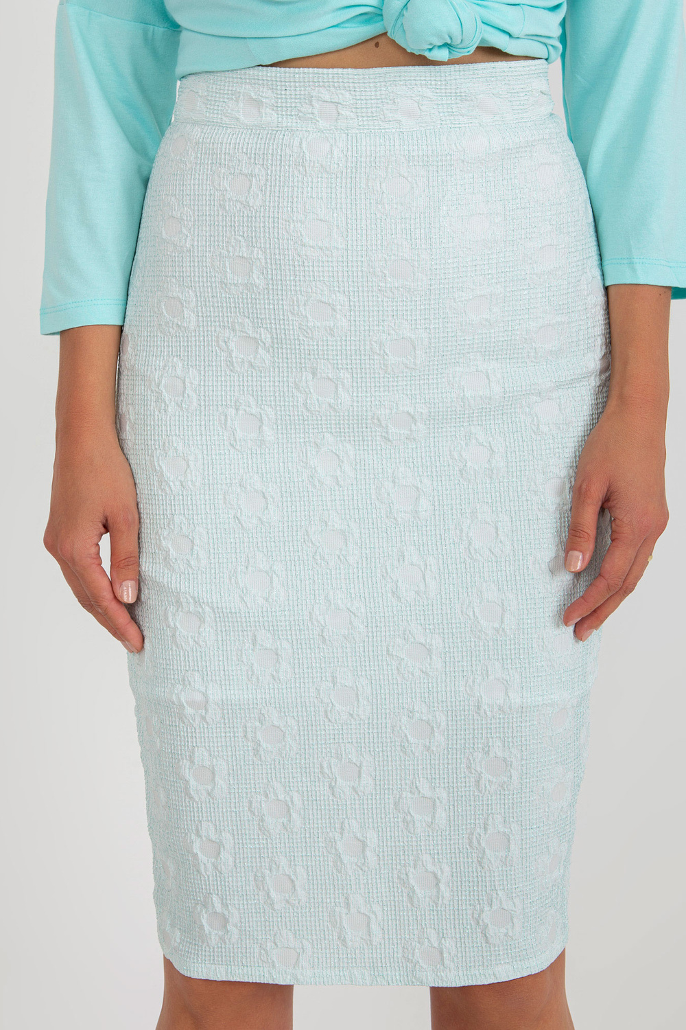 Modelis dėvi 36 dydį. Modelio išmatavimai: ūgis 175 cm, krūtinė 84 cm, juosmuo 65 cm, klubai 92 cm.