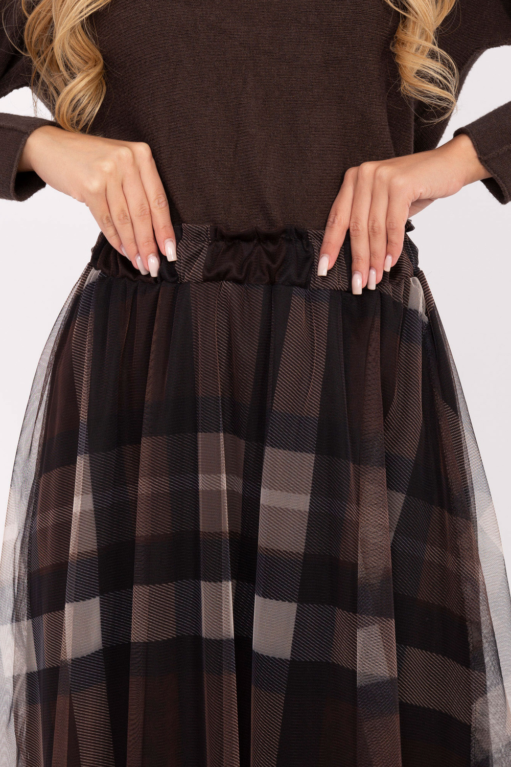 Sijonėlio matmenys universalaus dydžio: plotis juosmenyje - 35 cm (padėjus lygiai), plotis juosmenyje - 74 cm (ištempus), apimtis ties klubais - 65 cm, bendras ilgis - 90 cm.