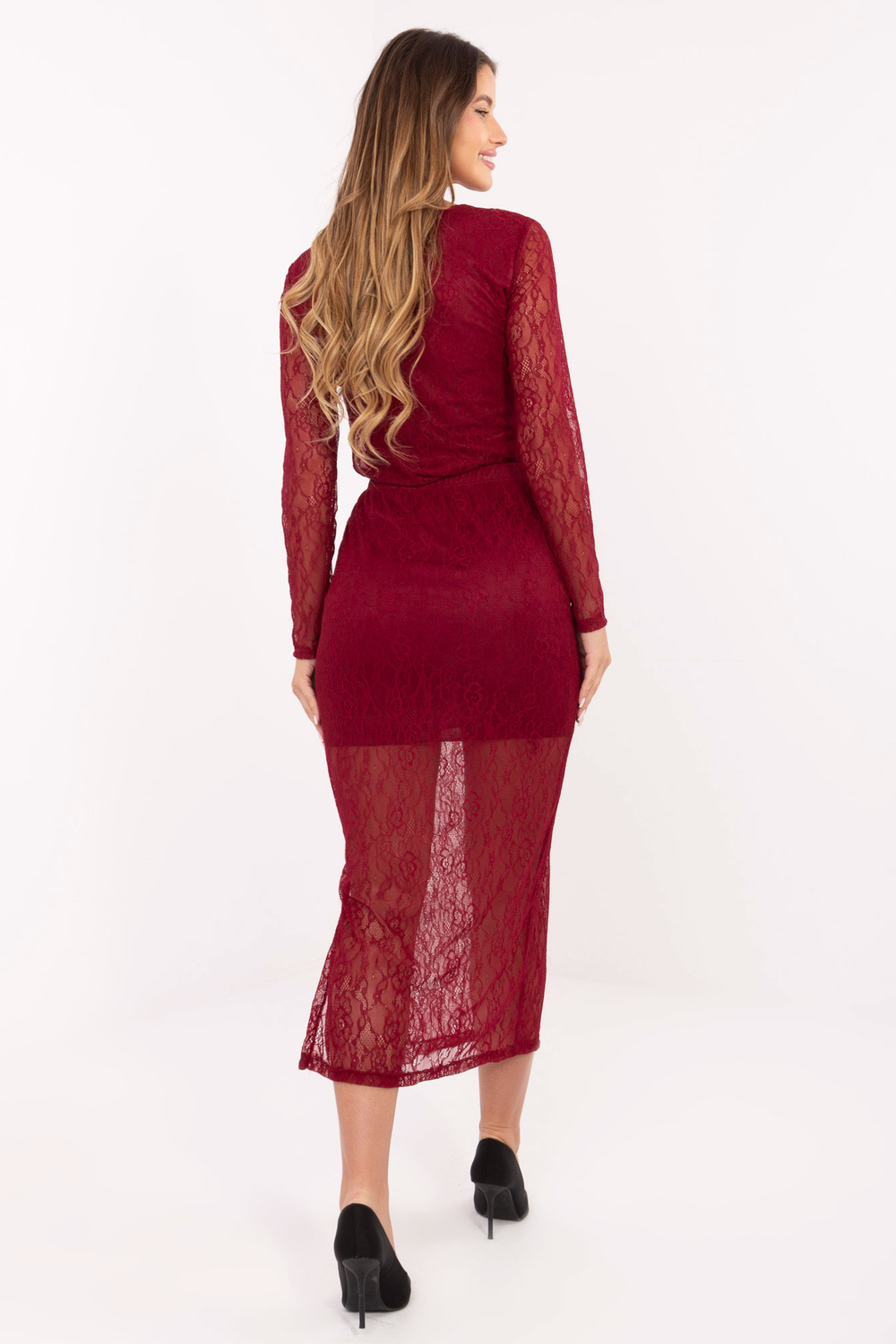 Modelis dėvi vieno dydžio drabužį. Modelio matmenys: ūgis 176 cm, krūtinė 90 cm, liemuo 62 cm, klubai 94 cm.