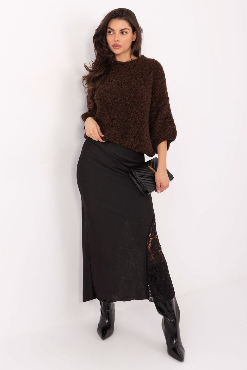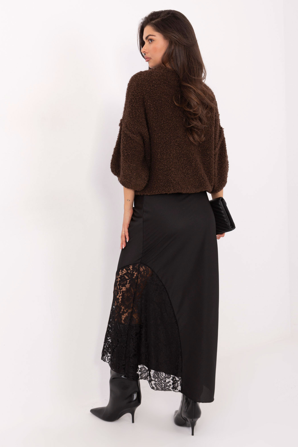 Modelis dėvi vieno dydžio drabužį. Modelio matmenys: ūgis 173 cm, krūtinė 85 cm, liemuo 62 cm, klubai 95 cm.