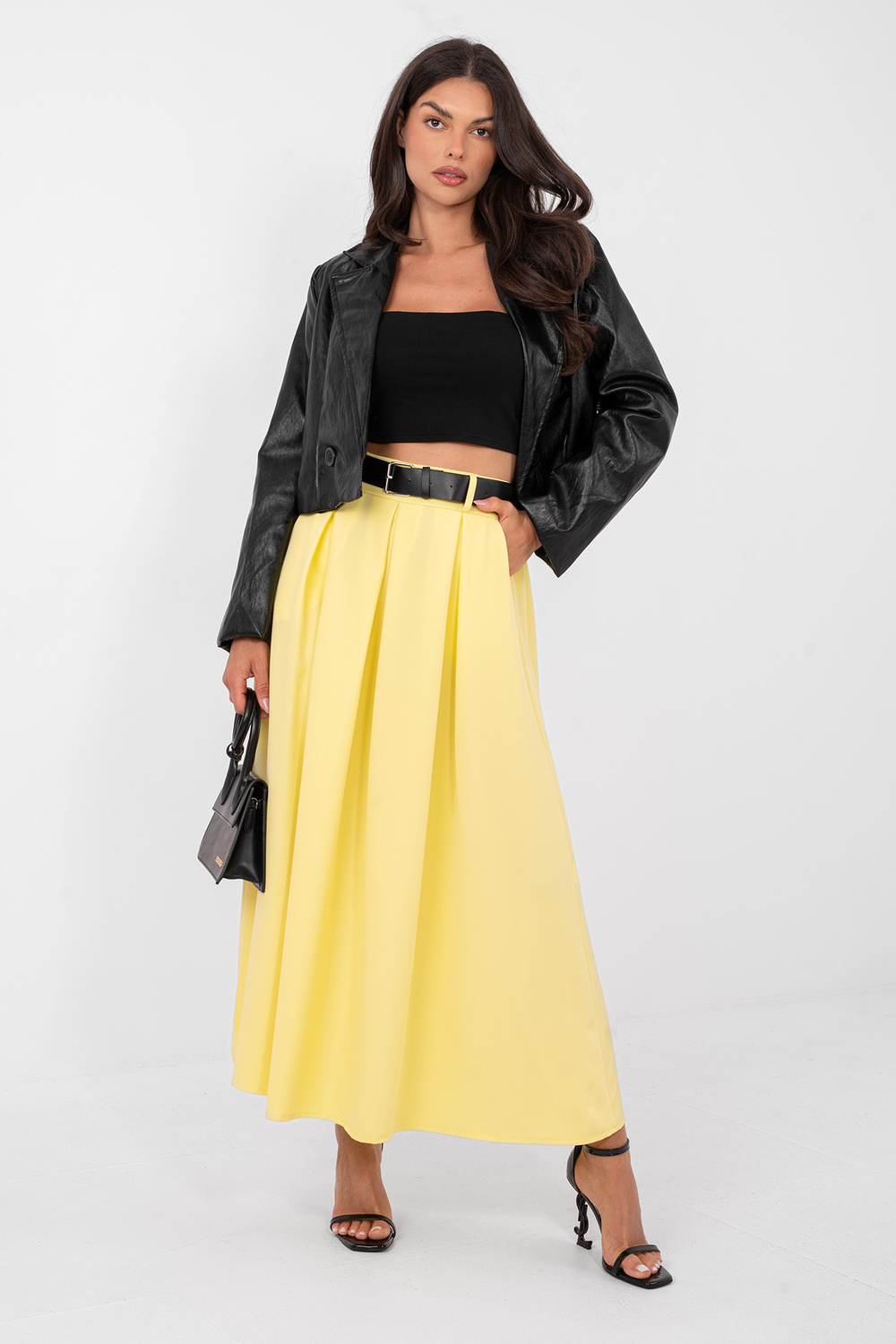Modelis dėvi vieno dydžio drabužį. Modelio išmatavimai: ūgis 173 cm, krūtinė 85 cm, liemuo 62 cm, klubai 95 cm .