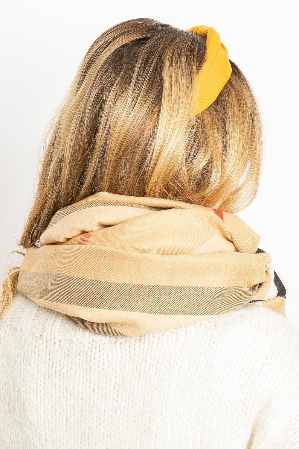 Smėlio spalvos skara su kutais. Medžiagos sudėtis: 100% poliesterio plovimo takas: skalbimo rankomis matmenys: apytiksl. 130 x 130 cm