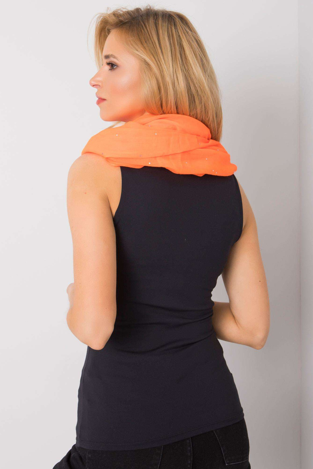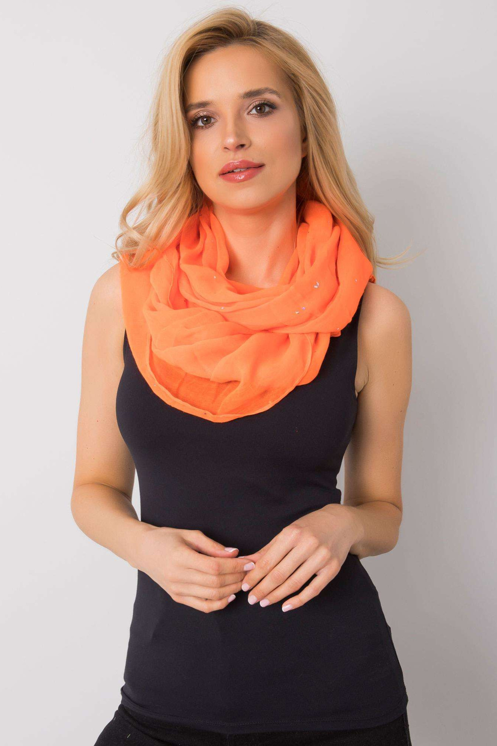 Fluoranžinis kaminas su blizgiomis aplikacijomis.