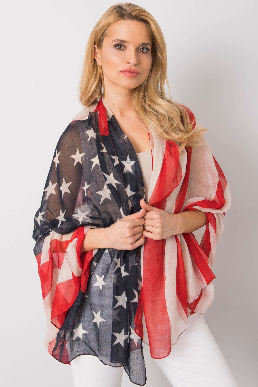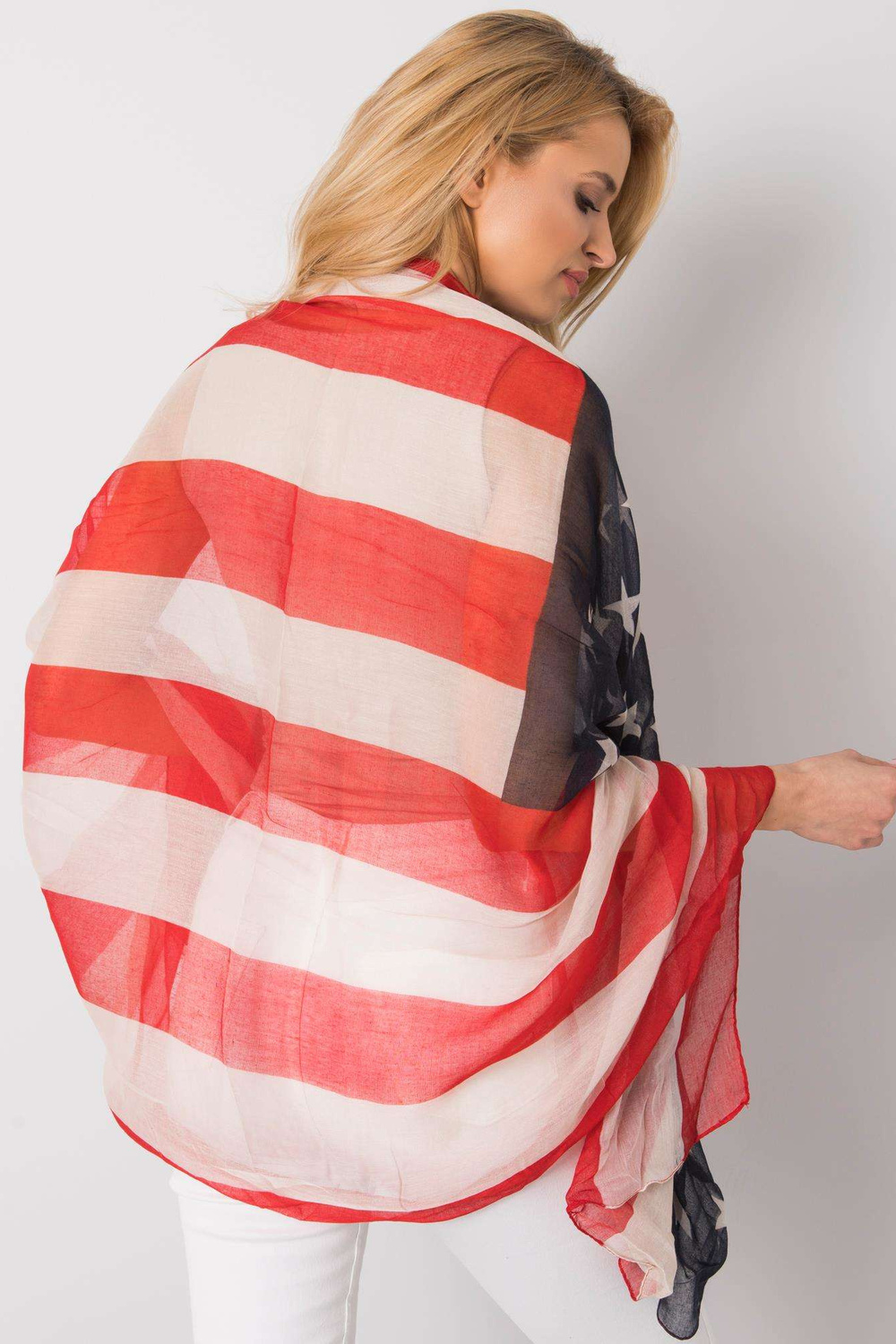 Raudonai smėlio spalvos skarelė su spauda. medžiagos sudėtis: 100% viskozė skalbimo būdas: skalbimas mašinoje 30°C matmenys: apytiksl. 114 x 160 cm