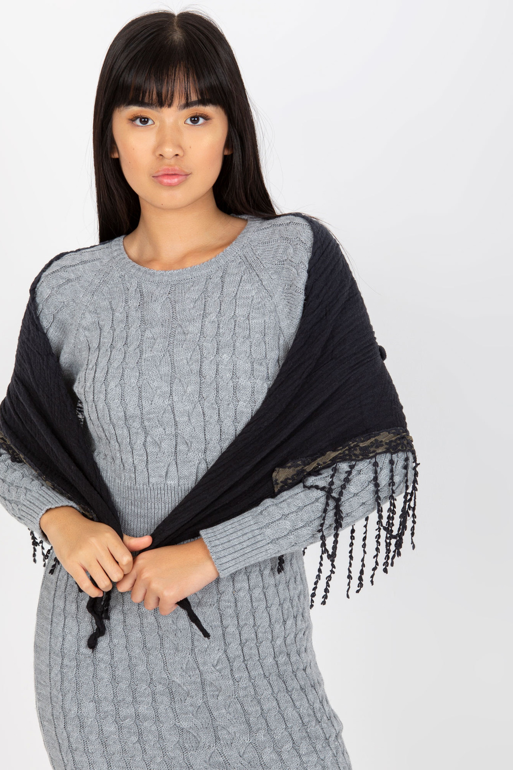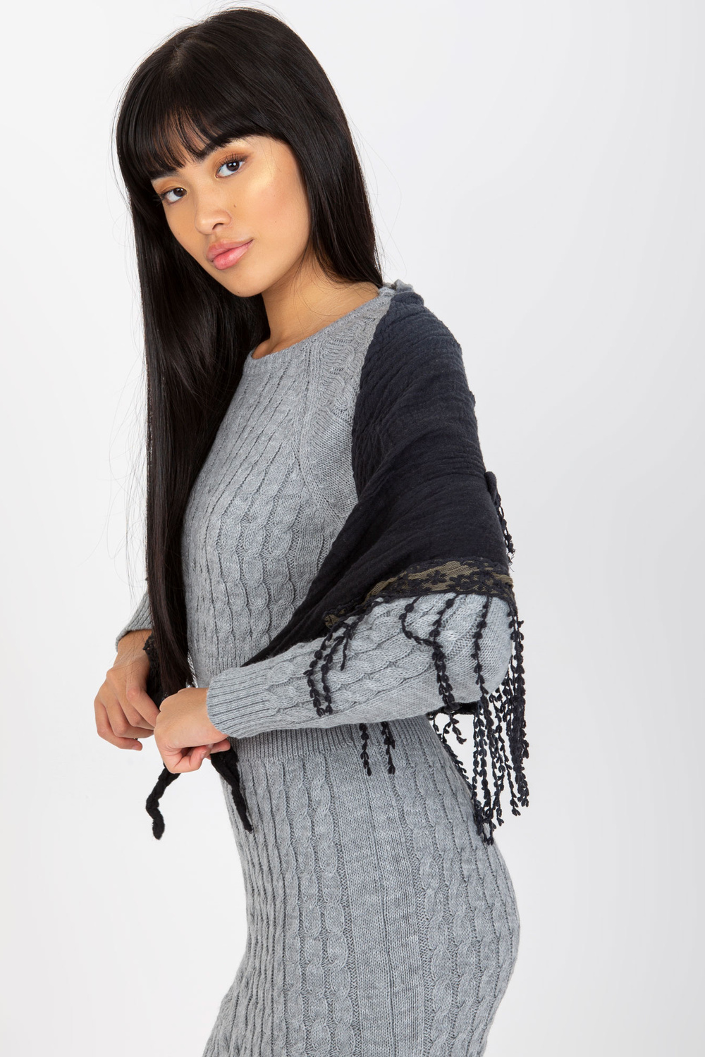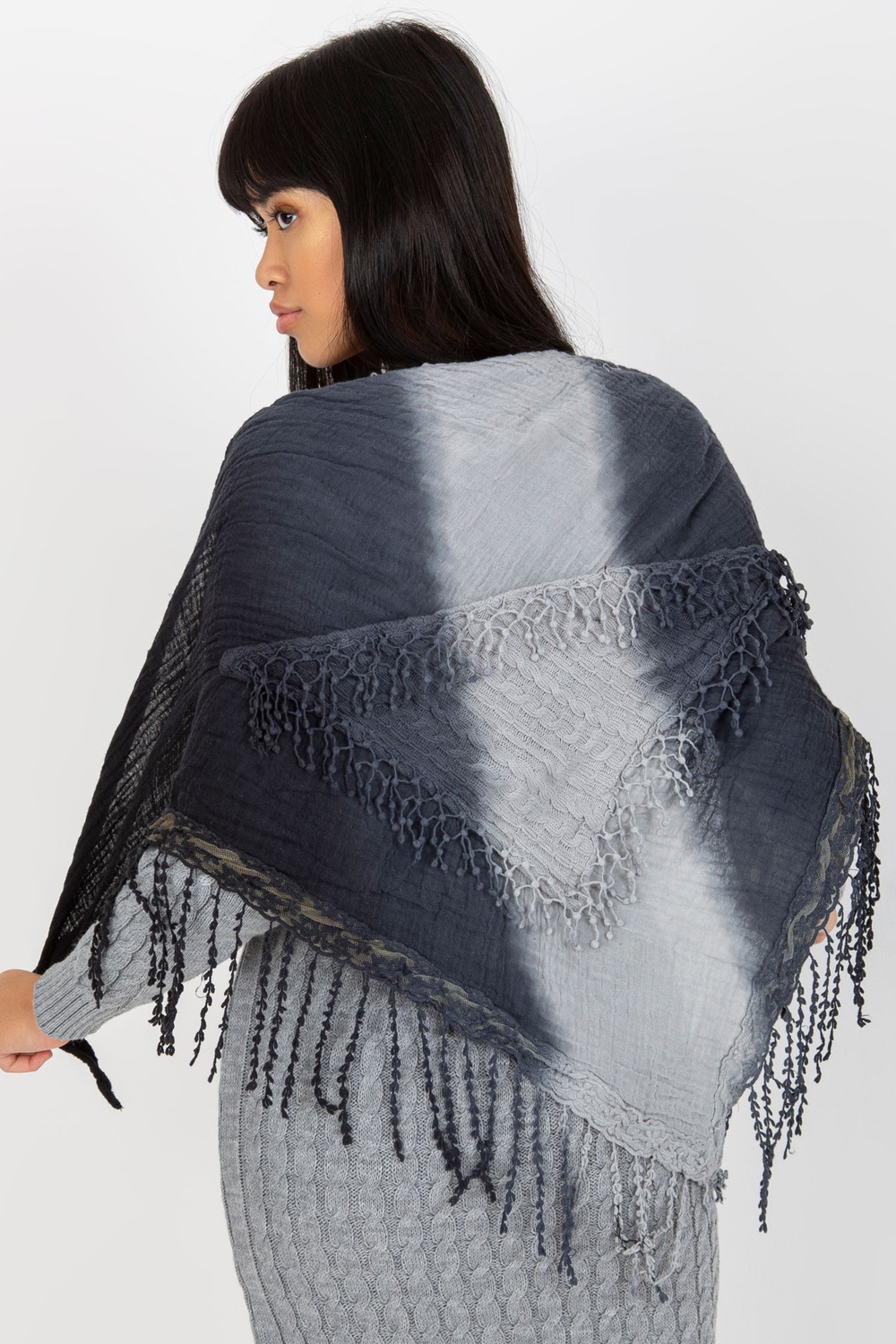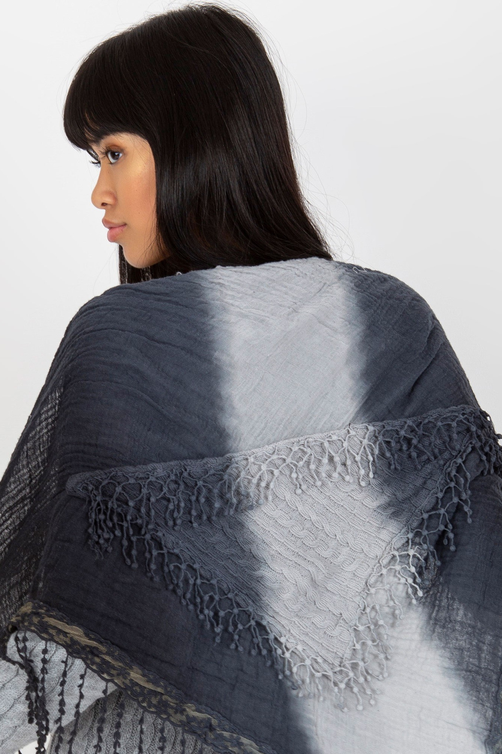 Marineblauer Damenschal aus Musselin mit Fransen.