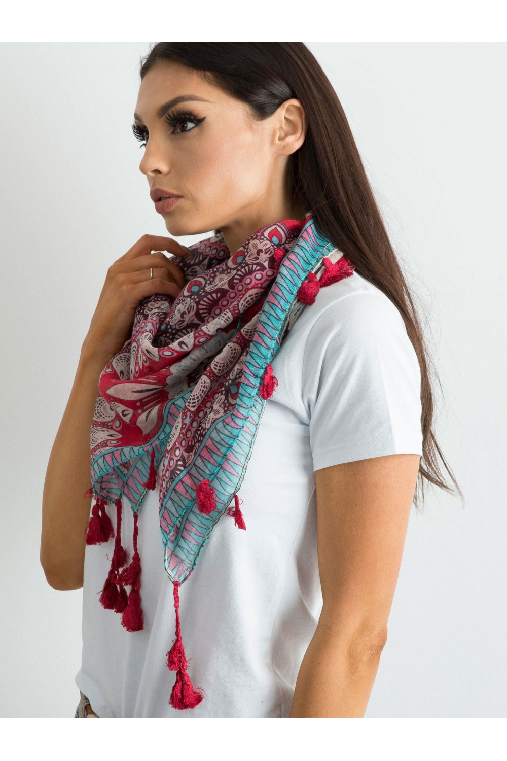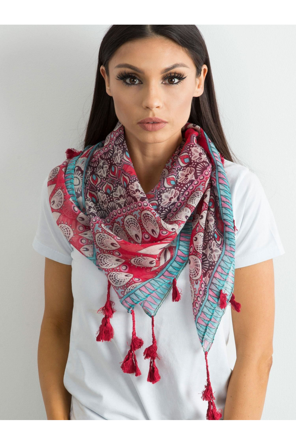 Raudonas šalikas su etniniu raštu .