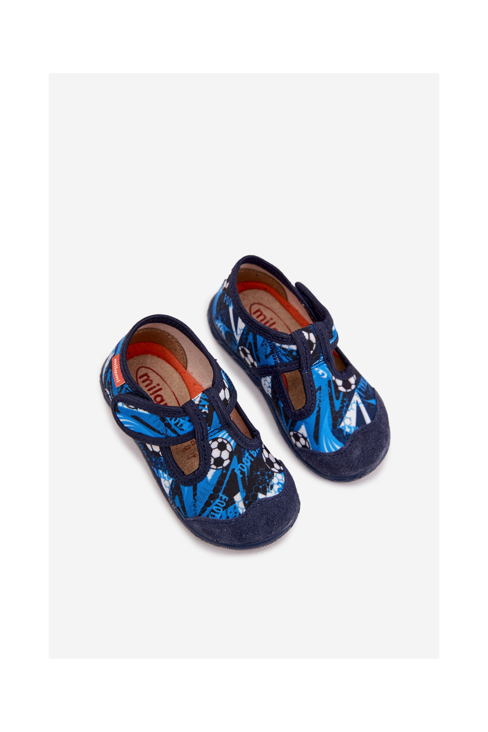 Šlepetės Milami vaikiškos su lipniais užsegimais Kamuoliai tamsiai mėlynos spalvos Jasimrra