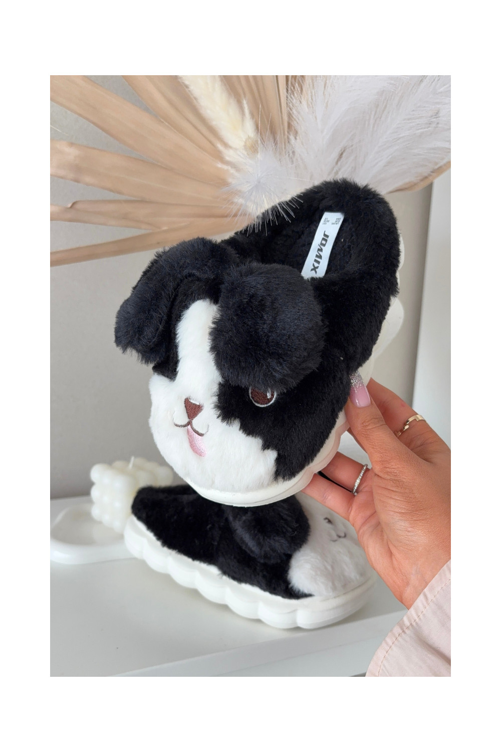 Juodos spalvos vaikiškos šlepetės su kailiuku „Šuniukai" Farnise
