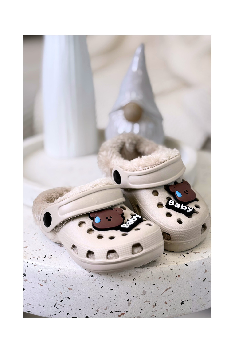 Vaikiškos šiltos šlepetės su kailiuku viduje, chaki spalvos „Cerelle"