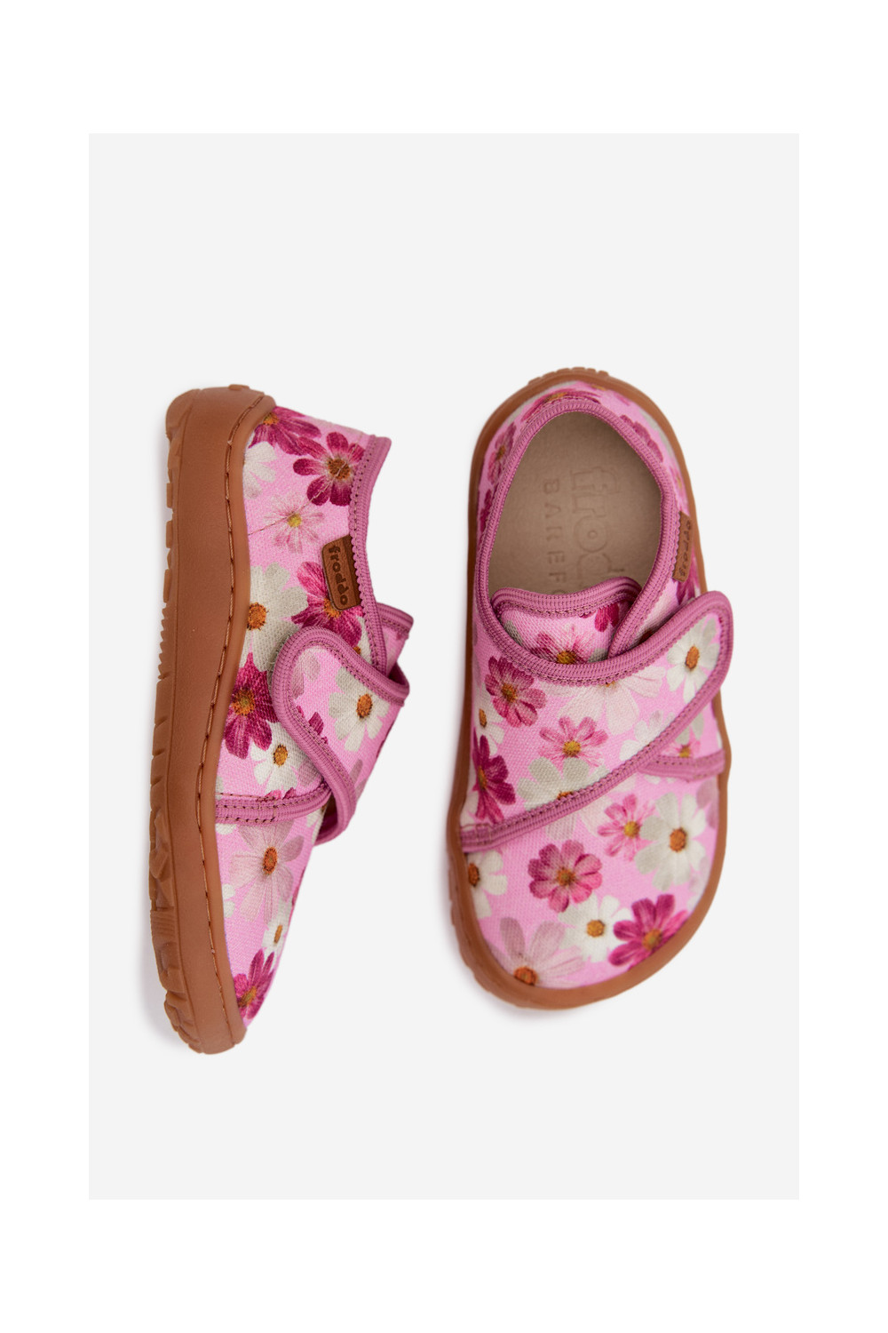 Šlepetės Vaikiški Vaikiški su lipniais užsegimais Barefoot su gėlytėmis Froddo G1700438-8 rožinės spalvos