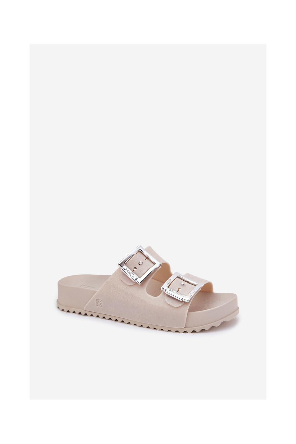 Moteriškos šlepetės su sagtimis   RR285056 smėlio spalvos