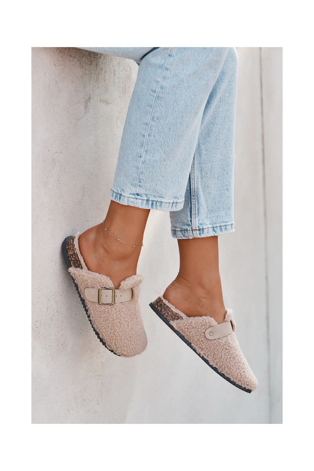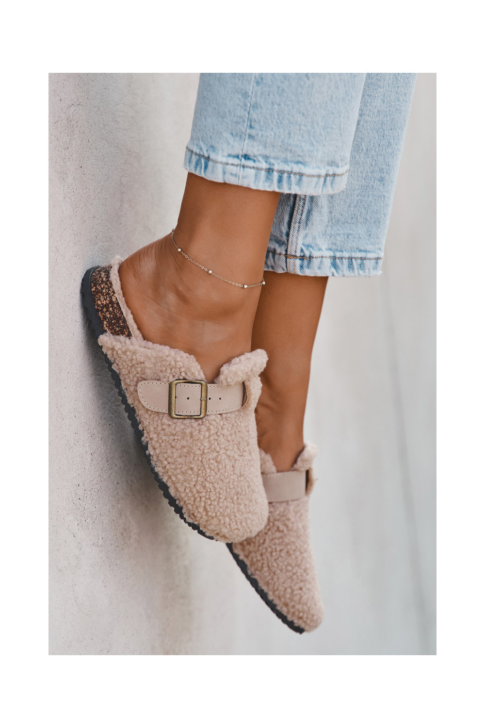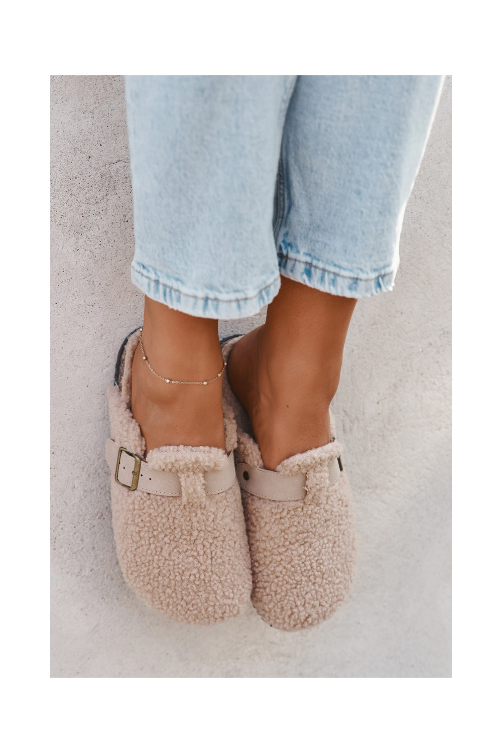 Moteriškos šlepetės su kailiuku „Typu Baranek" smėlio spalvos „Lorivine"