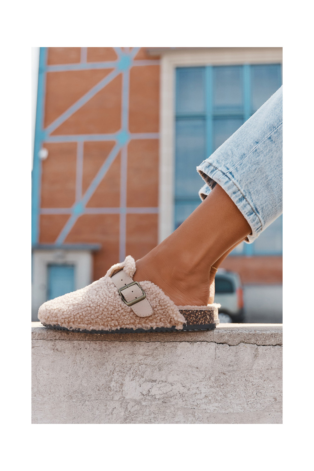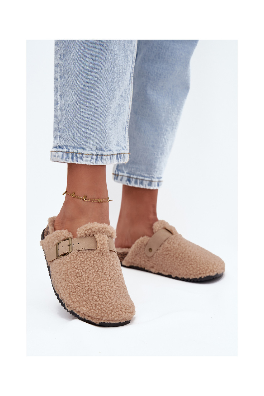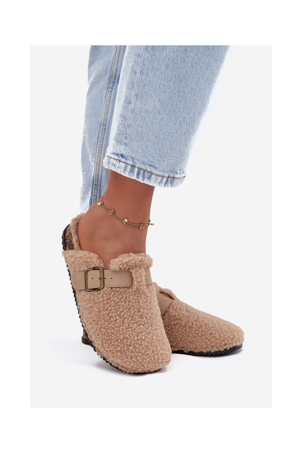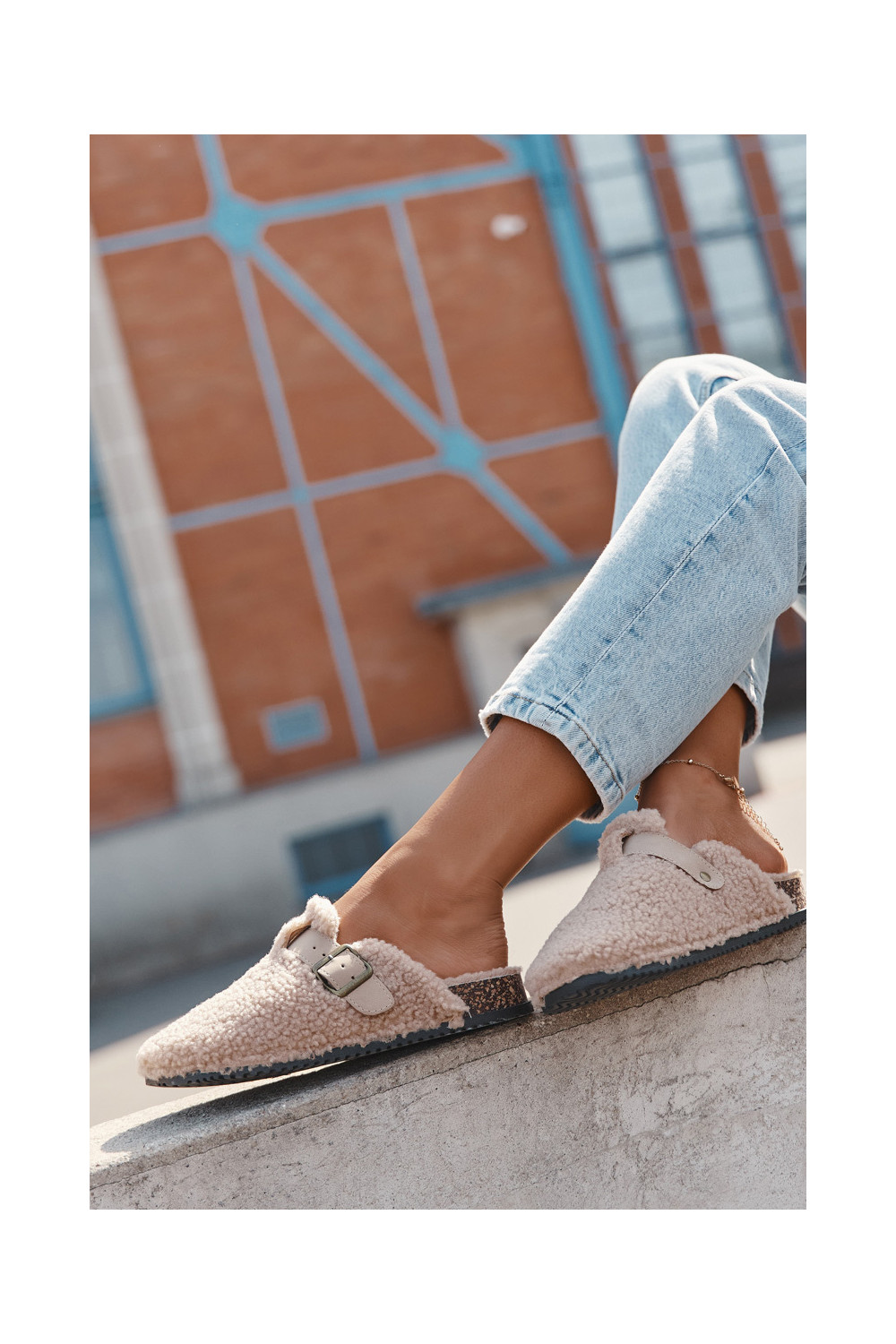 Moteriškos šlepetės su kailiuku „Typu Baranek" smėlio spalvos „Lorivine"