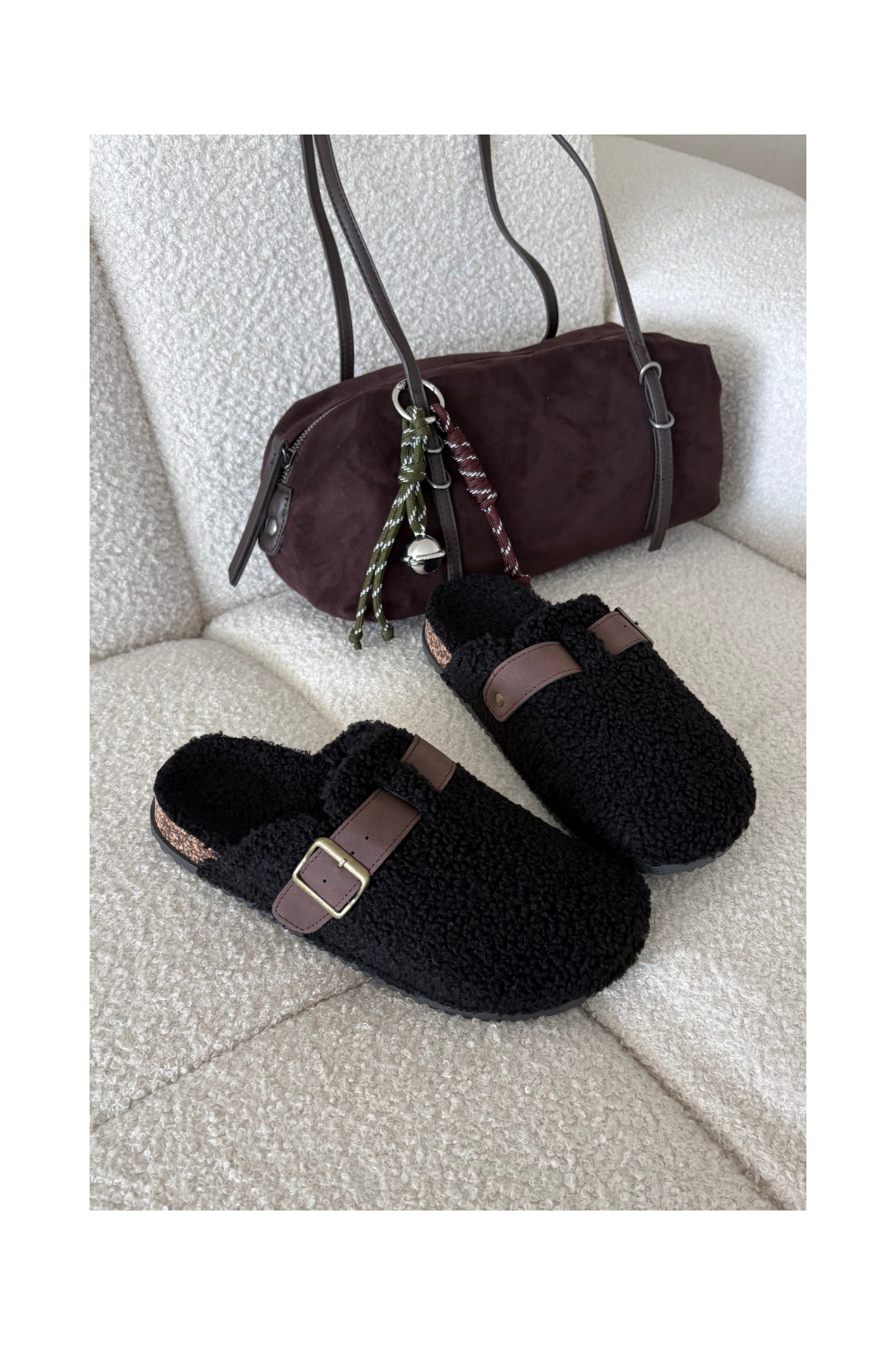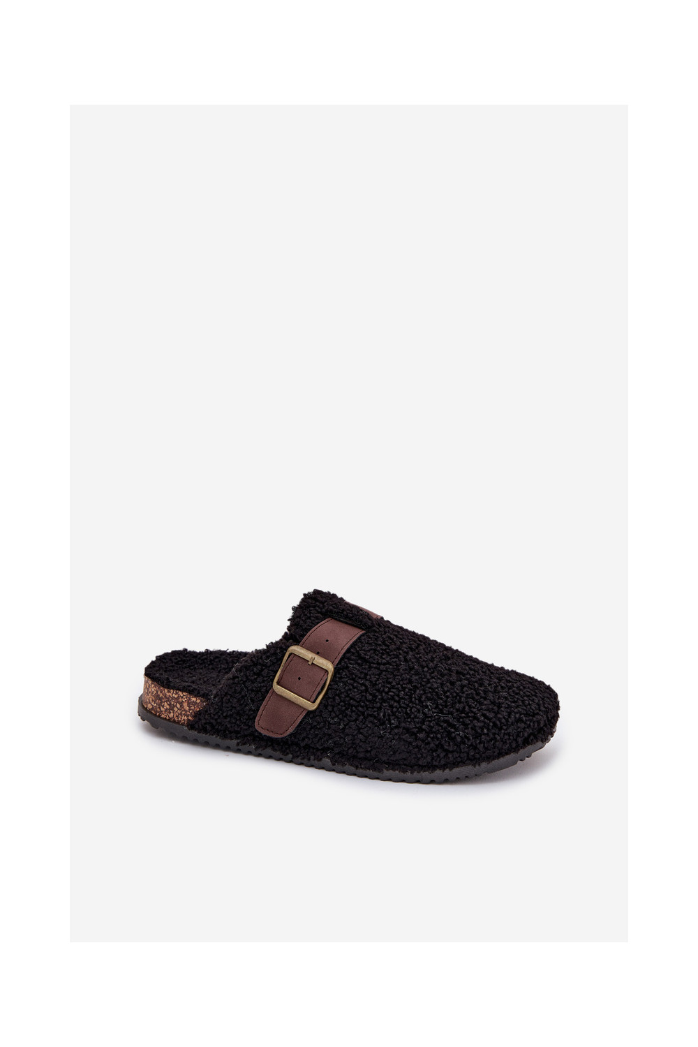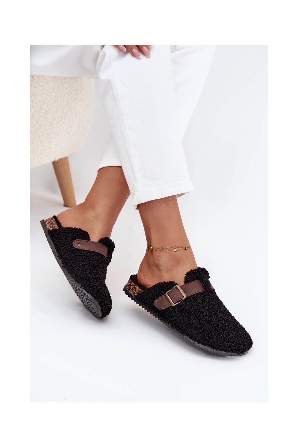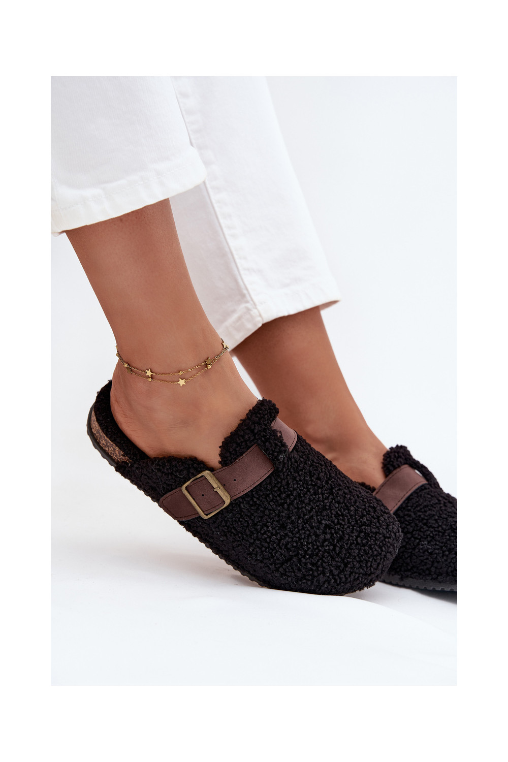 Moteriškos šlepetės su avikailio tipo kailiuku, juodos spalvos Lorivine