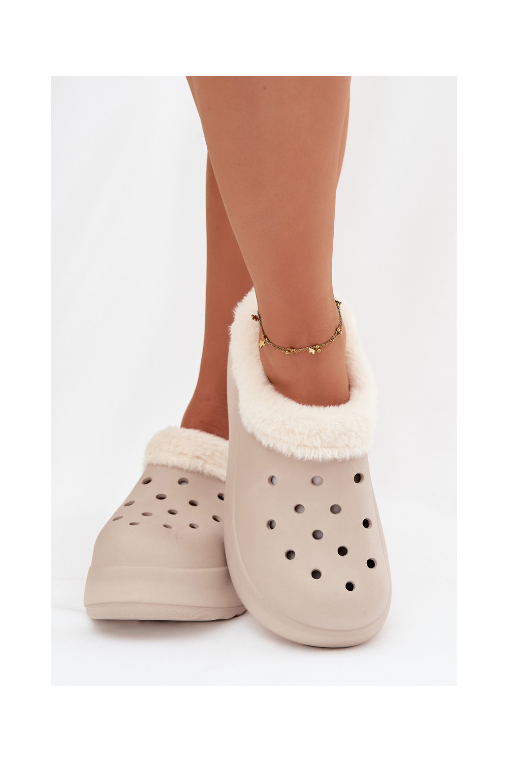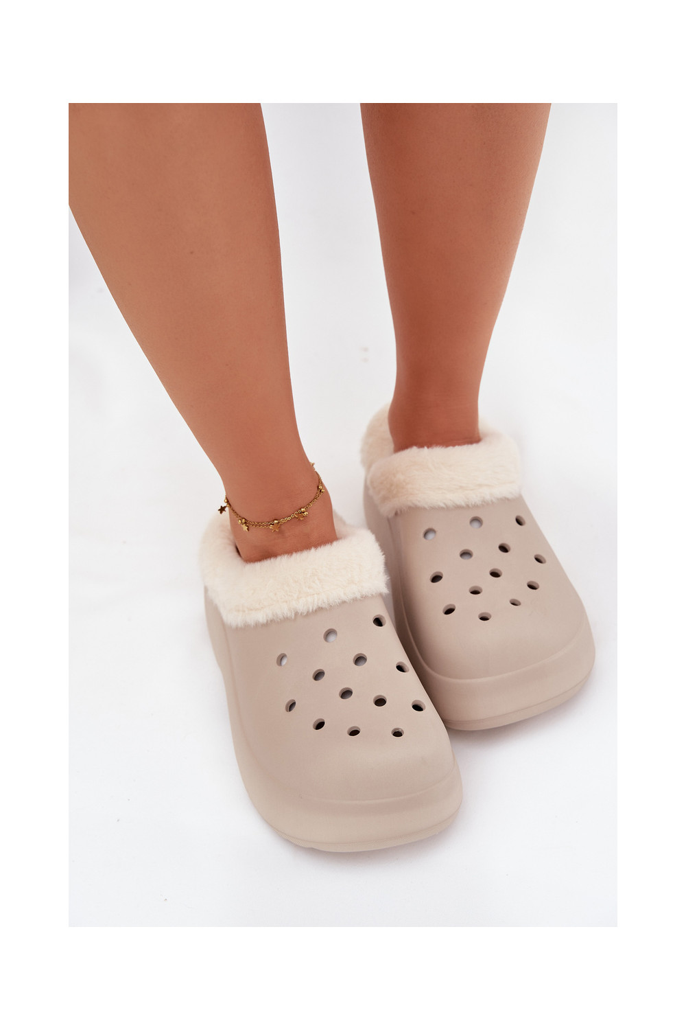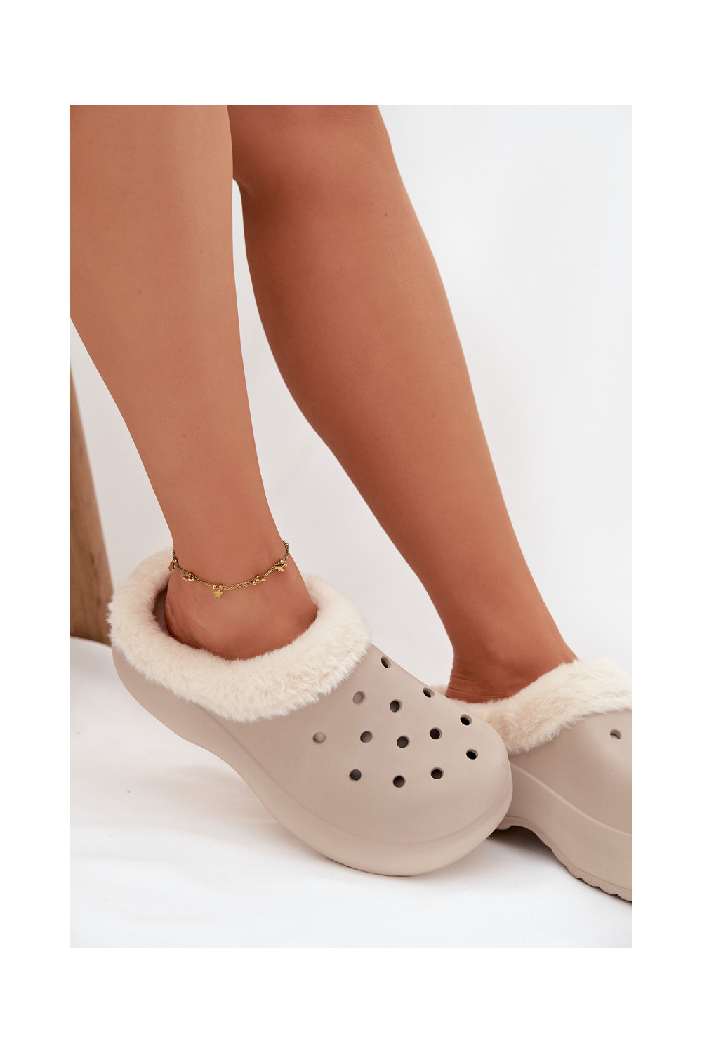 Lengvos šlepetės Moteriškos šlepetės pašiltinti su kailiuku viduje chaki spalvos Palvine