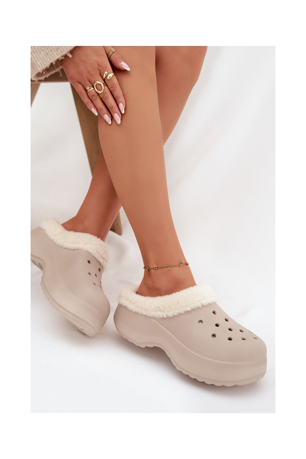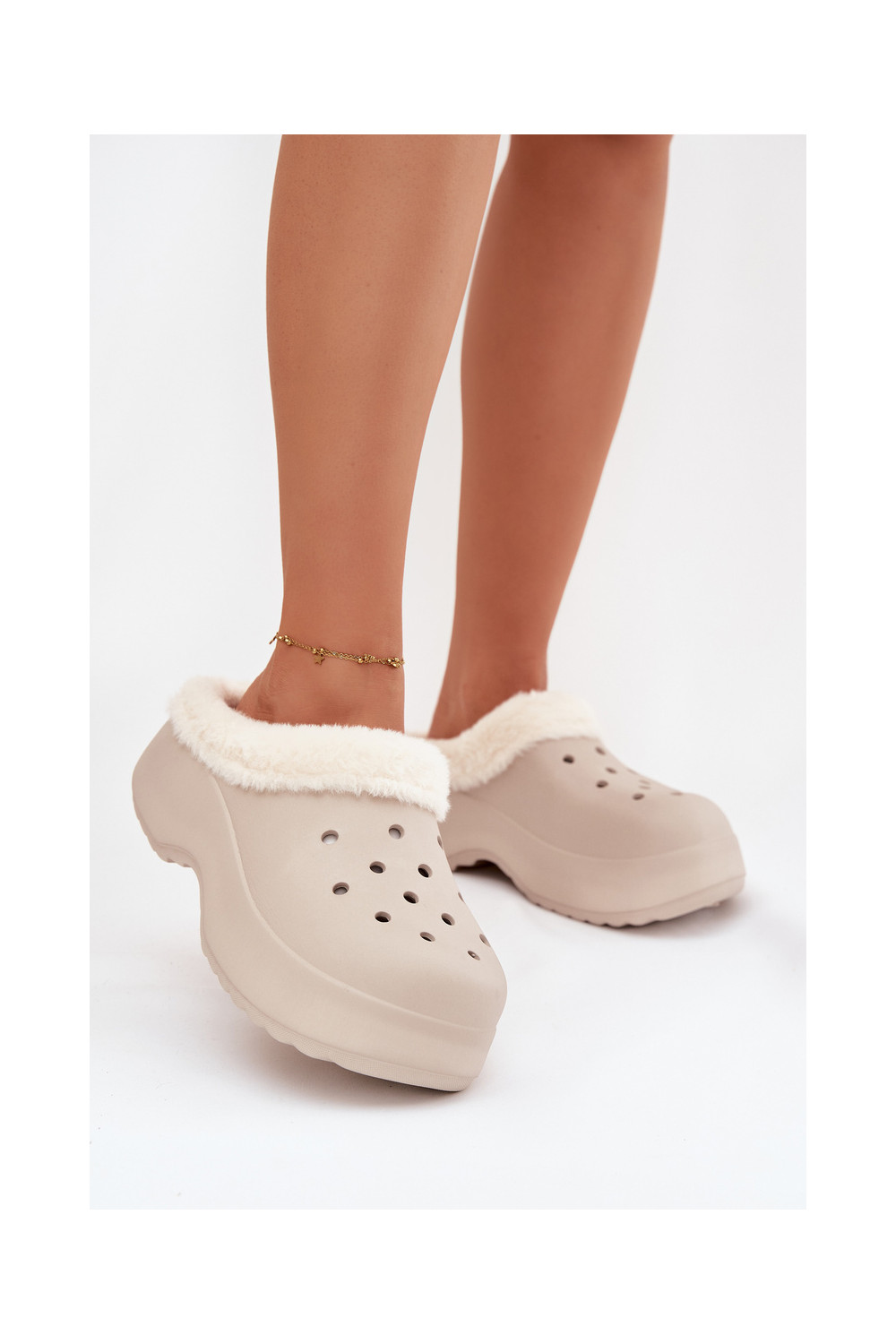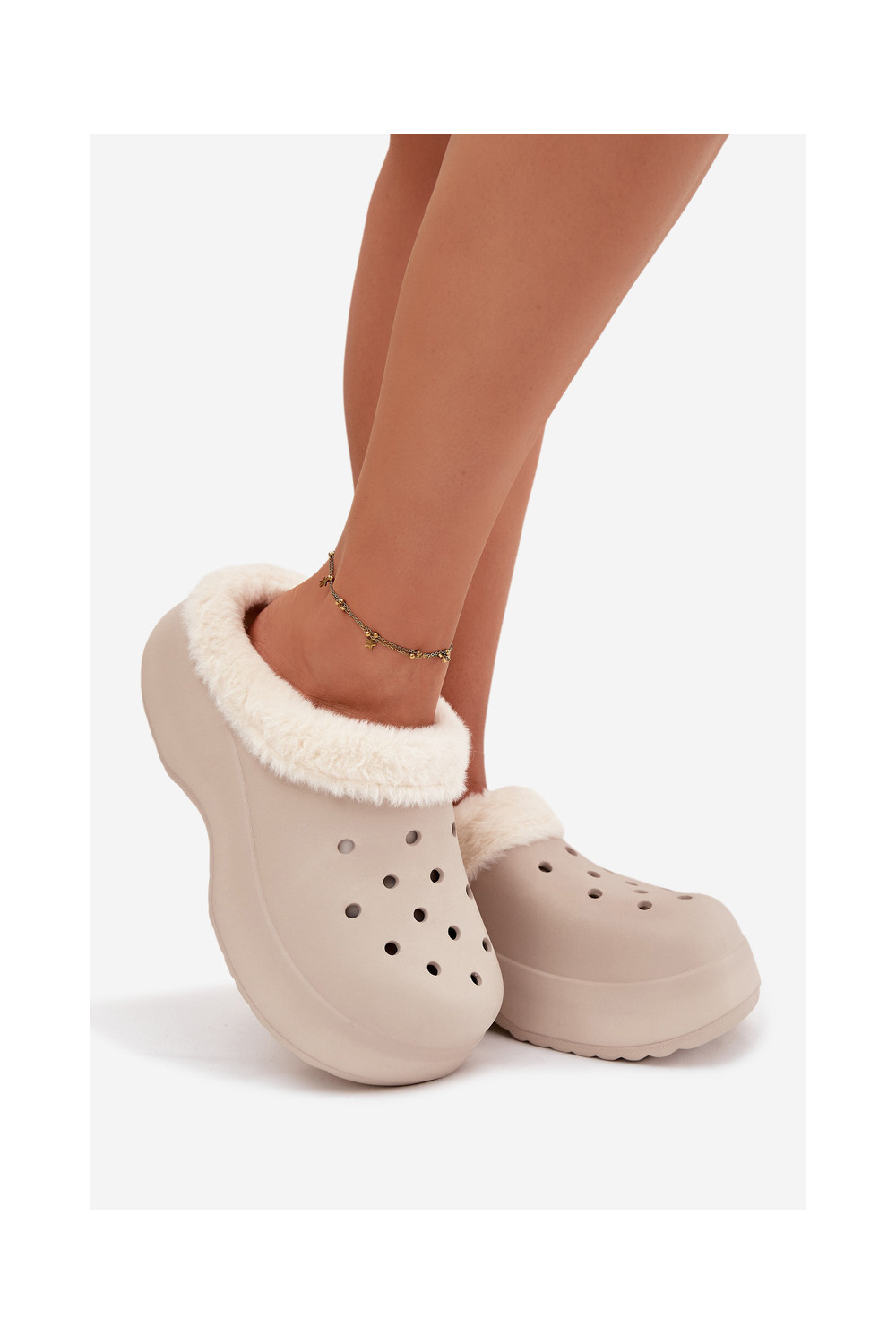 Lengvos šlepetės Moteriškos šlepetės pašiltinti su kailiuku viduje chaki spalvos Palvine