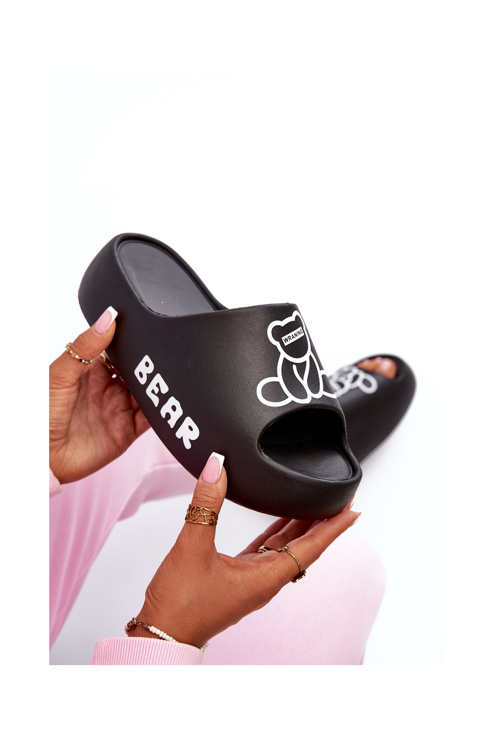 Lengvos šlepetės Moteriškos šlepetės su madingais masyviais padais Su Meškiuku juodos spalvos Lamira