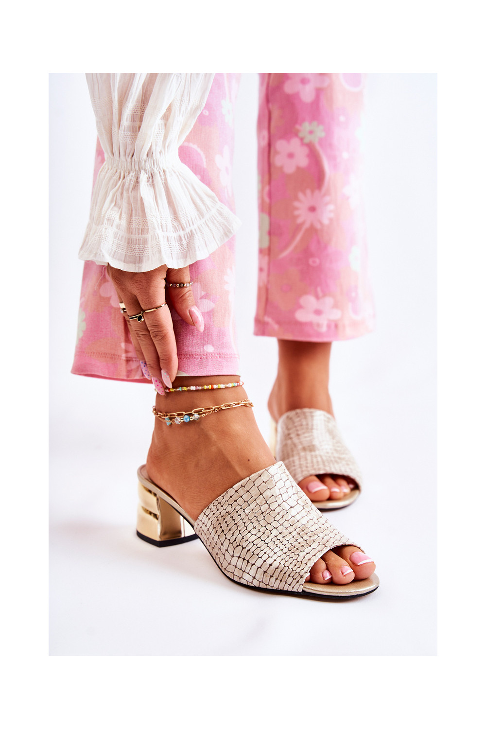 Odinės šlepetės Moteriškas Krokodilo raštas su kulniukais smėlio spalvos Perry