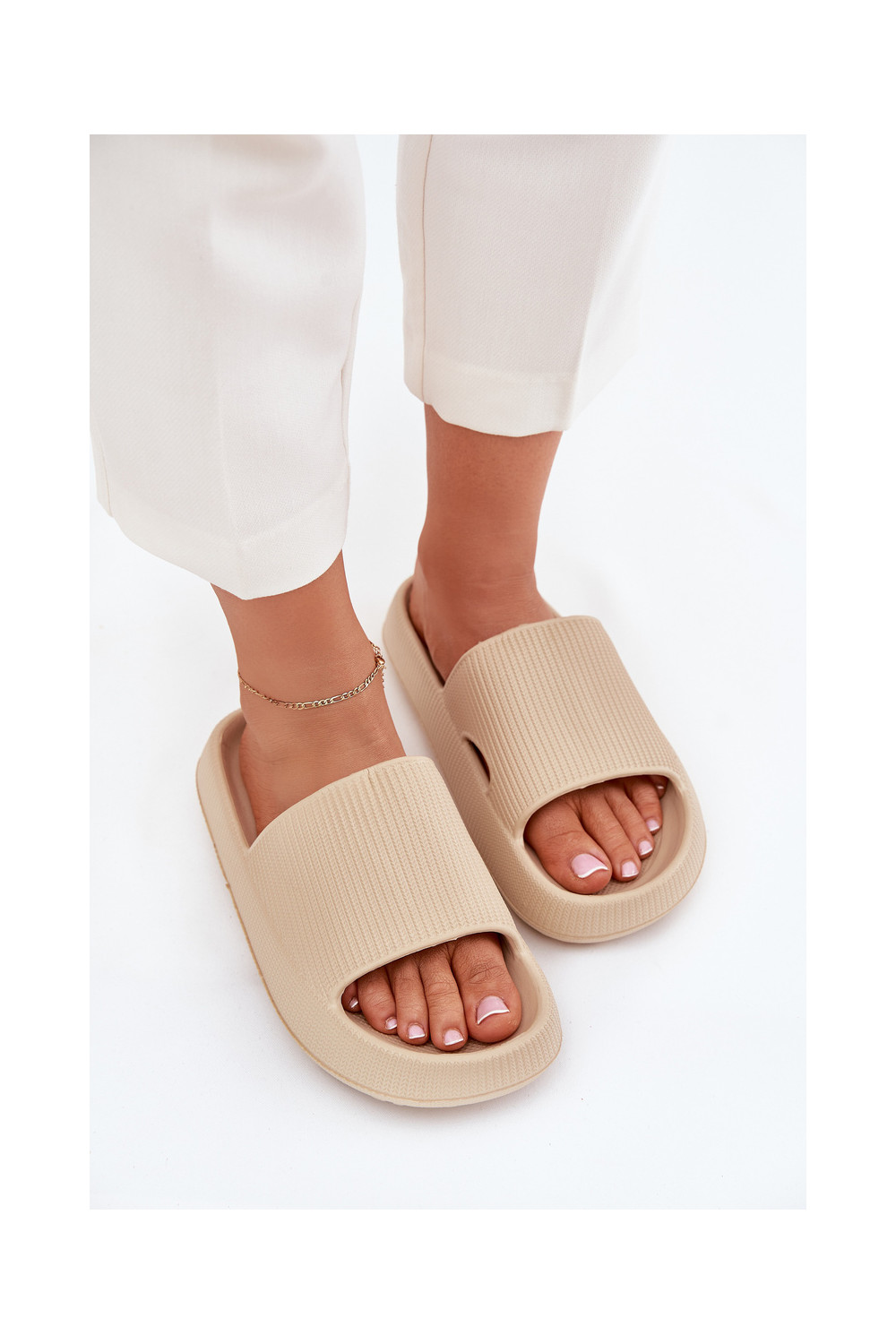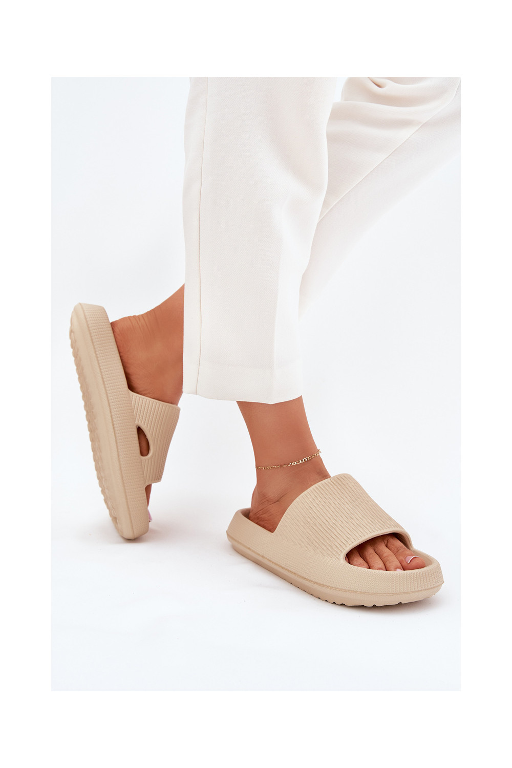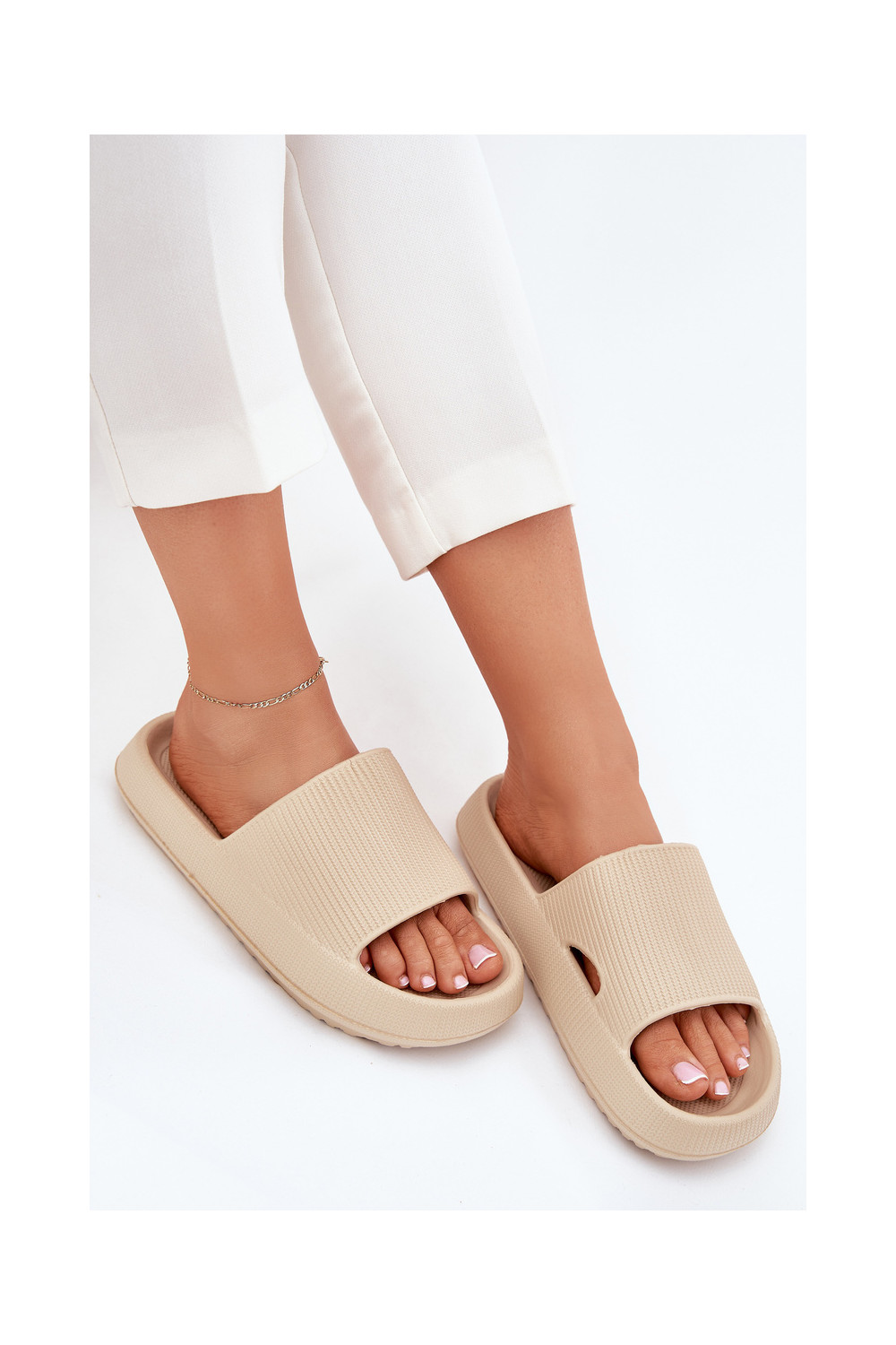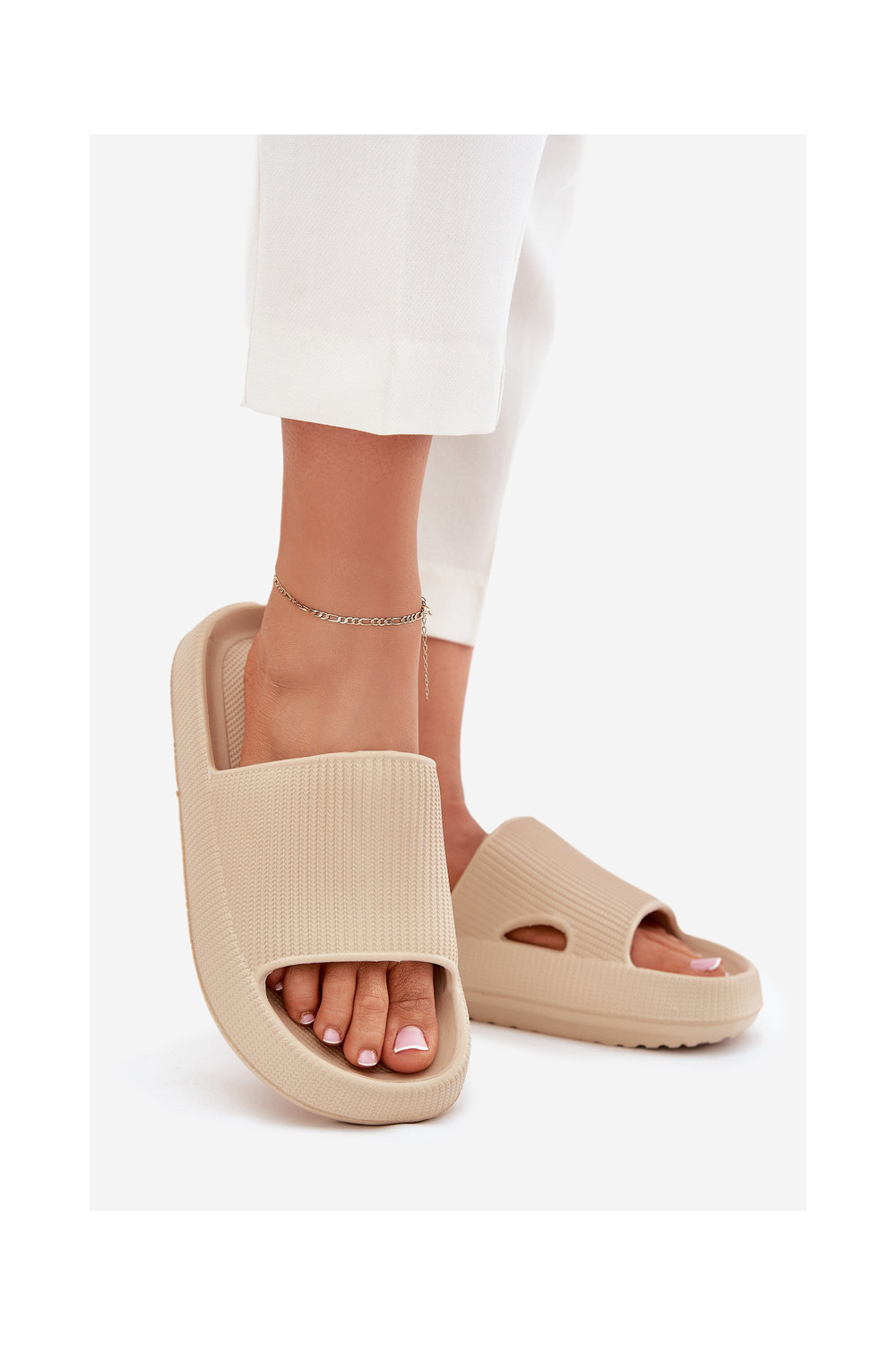 Moteriškos šlepetės su platforma ir iškirpimais, smėlio spalvos