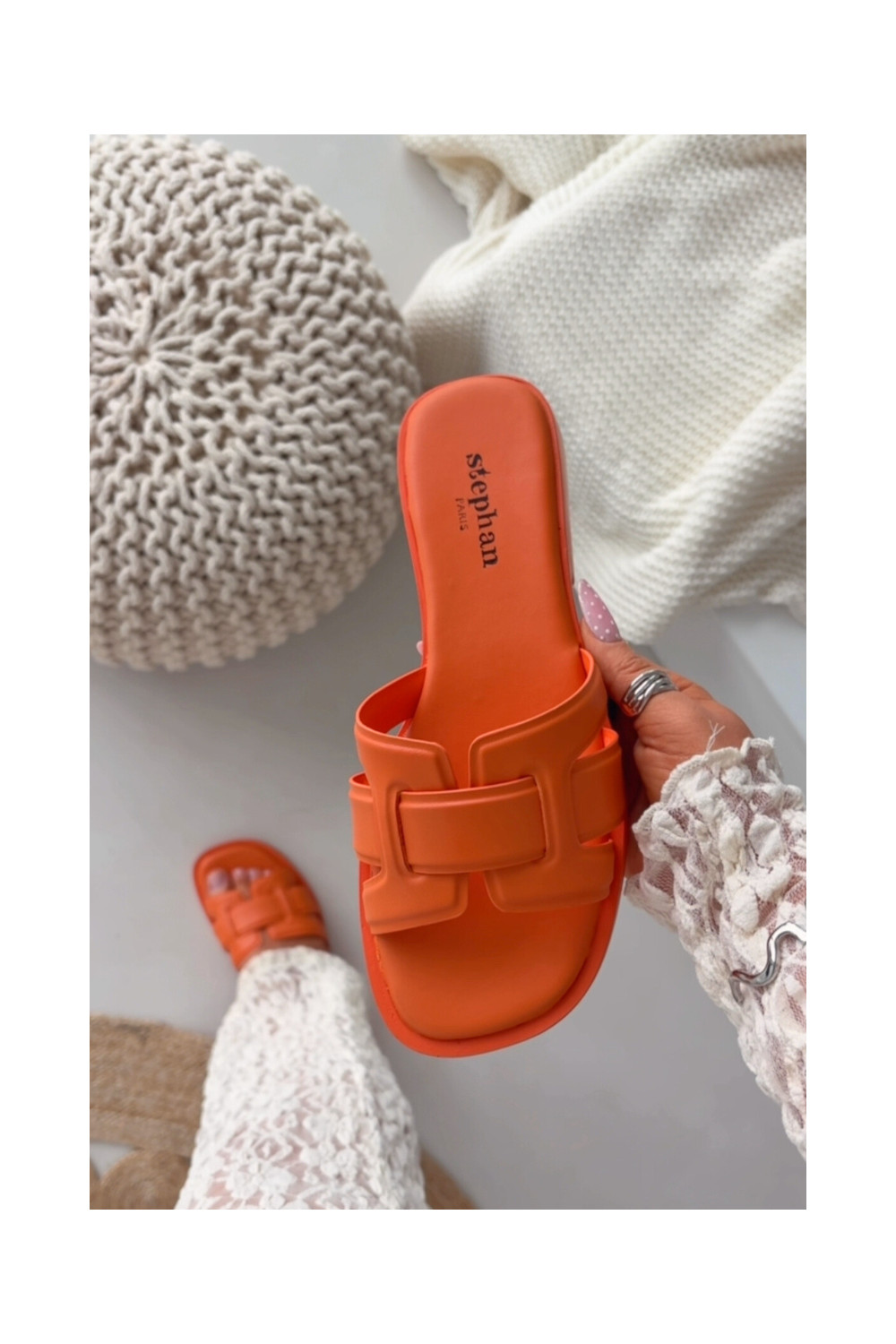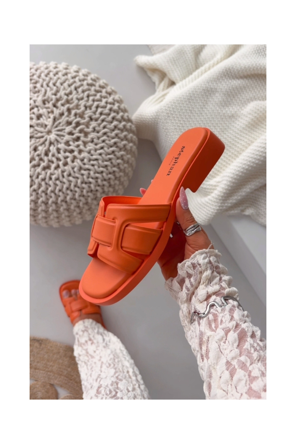 Moteriškos šlepetės su plačiais kulniukais oranžinės spalvos Lorania