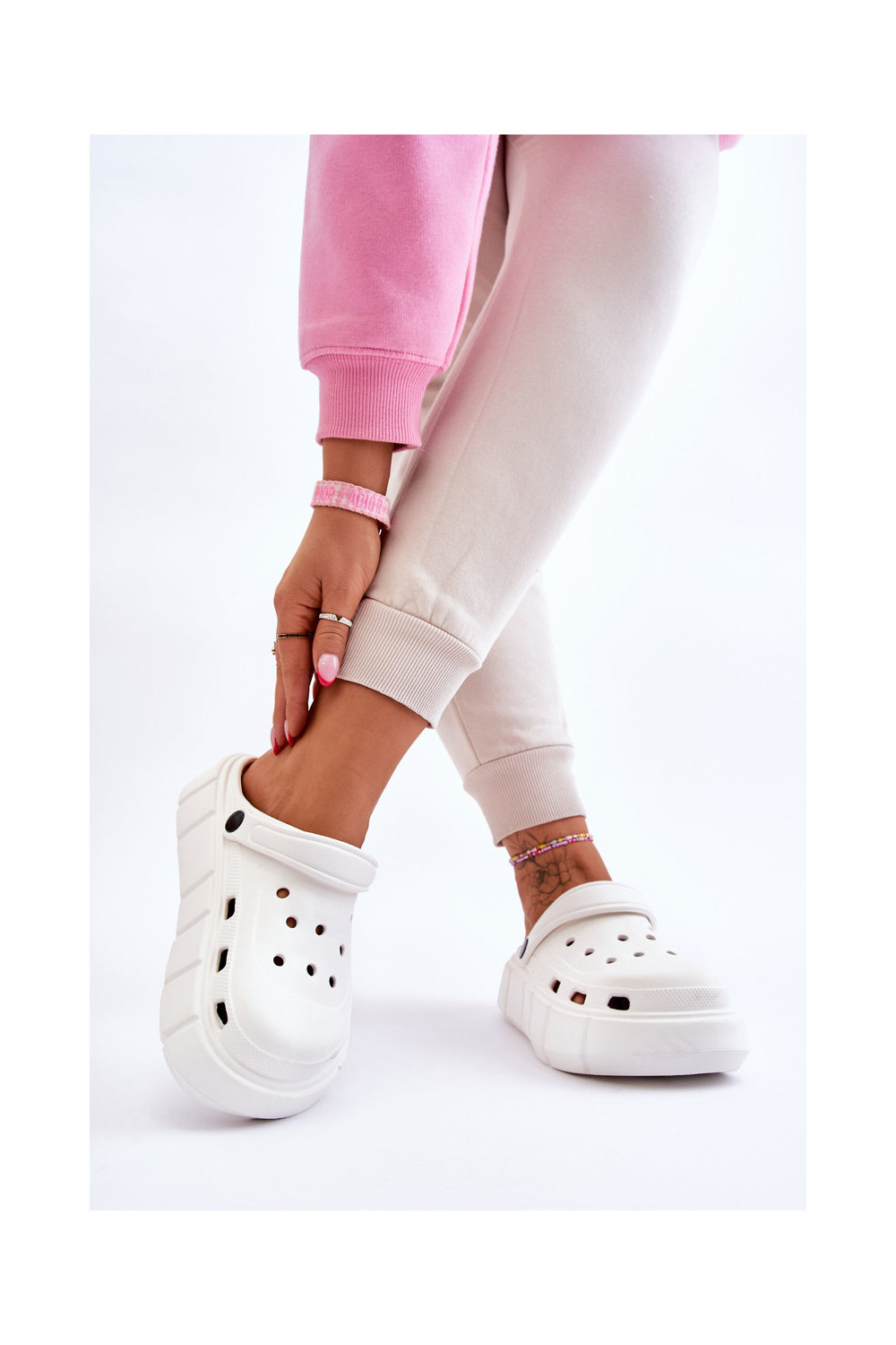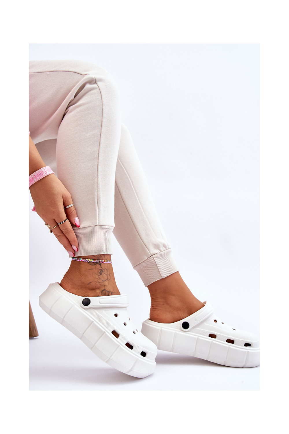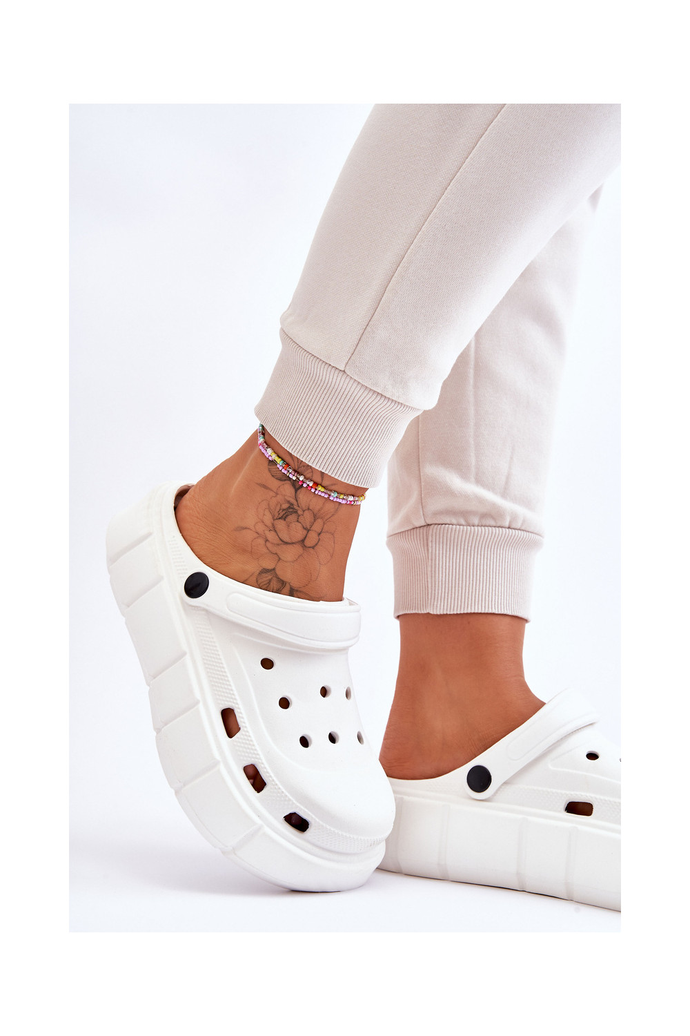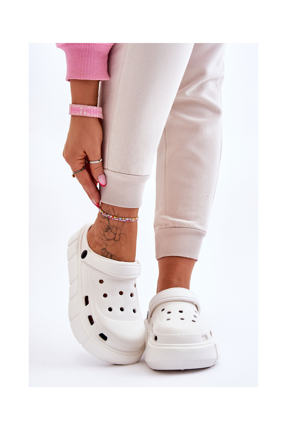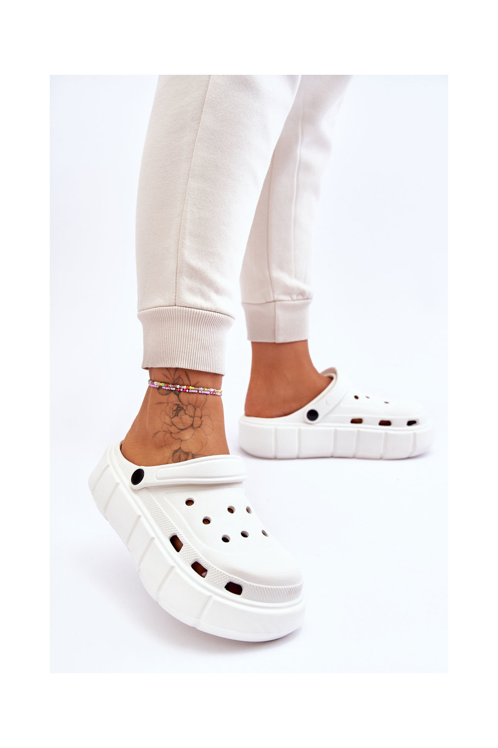 Crocs tipo šlepetės su paaukštinta platforma baltos spalvos Beckett