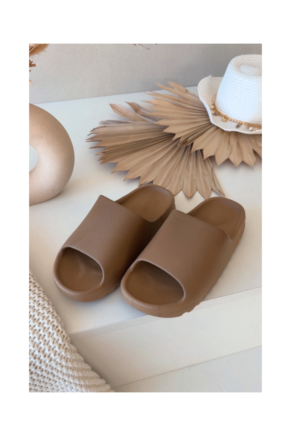 Rudos spalvos moteriškos šlepetės Olyria su platforma