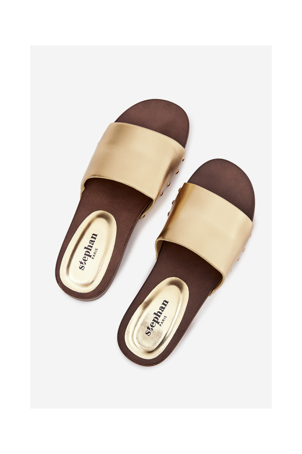 Moteriškos šlepetės su kniedėmis aukso spalvos Terissa